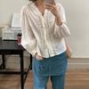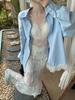 Cardigan de Tricô Estilo Francês da Moda com Costura de Renda Gola POLO Primavera Preguiçosa Versátil Solto Camisa Feminina Top Elegante de Manga Comprida