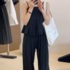 Conjunto de Roupa de Verão para Mulheres 2025 Novo Conjunto de Duas Peças da Moda Regata e Calças de Perna Larga Moda Casual