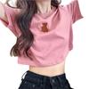 Verão 2025 Estilo Coreano Novo Slim Curto Sem Cintura Urso Bordado Camiseta de Manga Curta Tops Estudantis Roupa Exterior Feminina