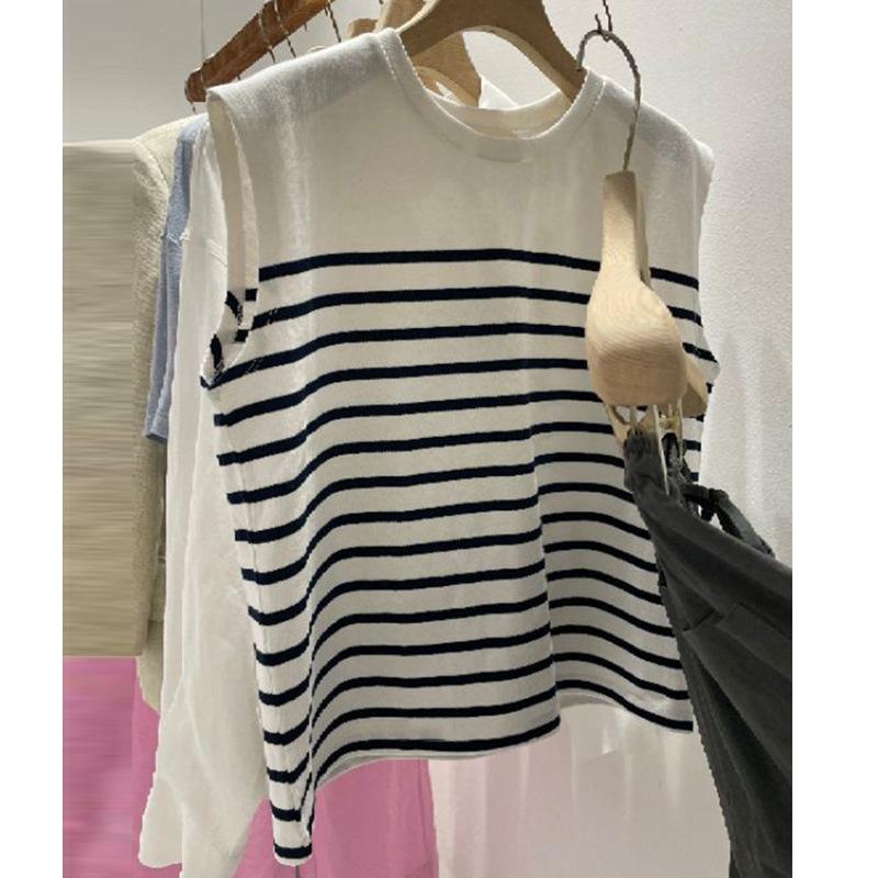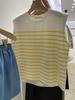 Nova Moda Feminina Coreana Primavera/Verão 2024 Camiseta Regata Simples Casual Listrada Color-Block Versátil Artística