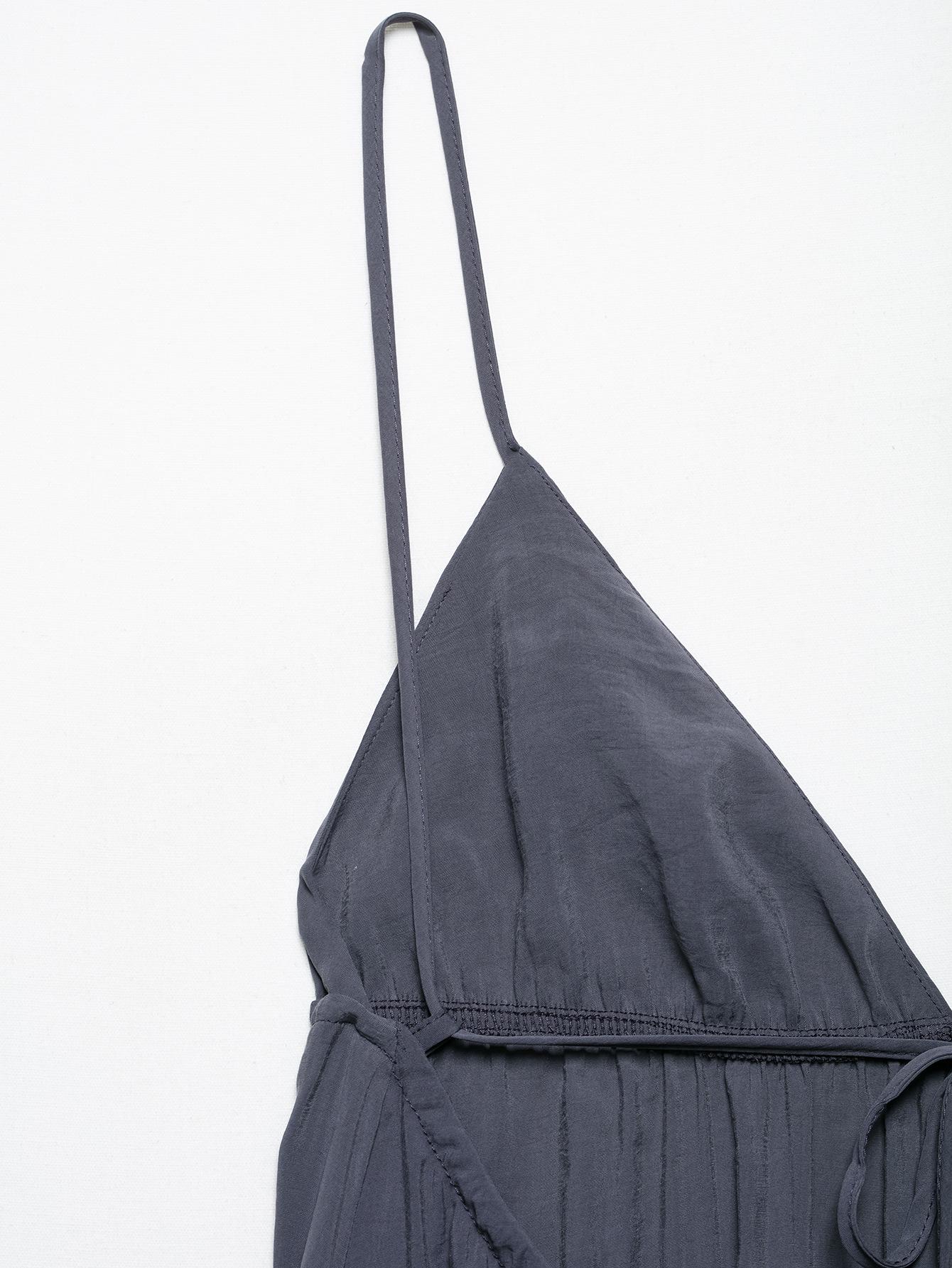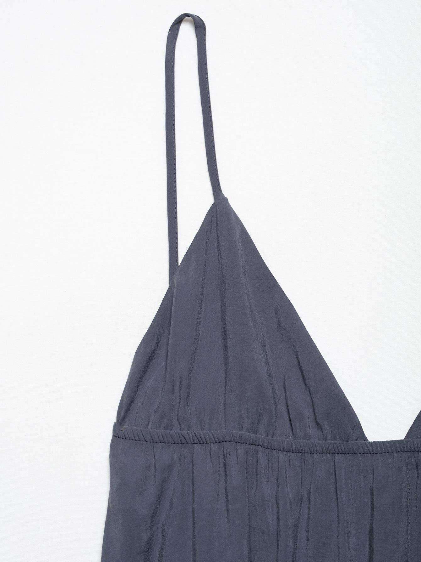 Aliexpress Atacado Comércio Exterior 2025 Verão Novo Design Elegante Saia Linha A Vestido de Alça Decote V