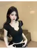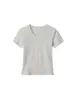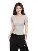 Camiseta Cinza Estilo Americano Decote V Manga Curta Feminina Verão 2025 Nova Justa Modeladora Spice Girls Ombro Caído Curta