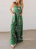 Amazon Transfronteiriço 2025 Verão Comércio Exterior Europeu e Americano Nova Moda Feminina Macacão Estampado de Alças Pernas Largas para Mulheres