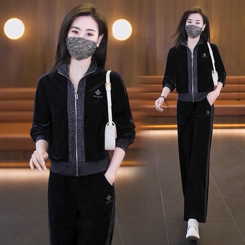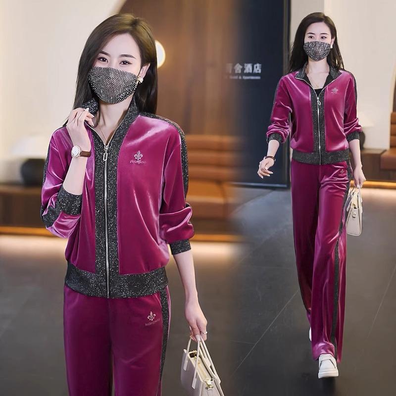 Compre Conjunto esportivo de veludo de marca de alta qualidade para mulheres, novo outono/inverno 2025, estilo estrangeiro, feminino, que reduz a idade, slim, conjunto de duas peças no atacado no Joom.pro