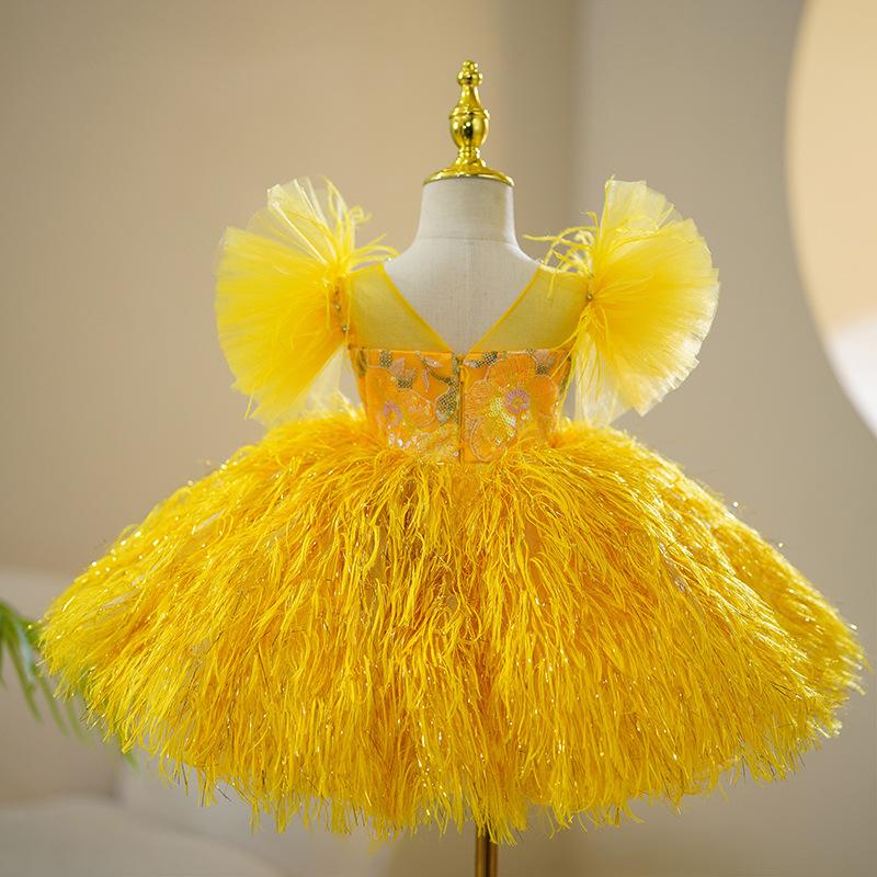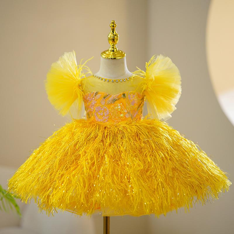Vestido Infantil Vestido de Princesa 2025 Inverno Novo Estilo Menina Aniversário Dama de Honra Peludo Apresentador Vestido de Piano