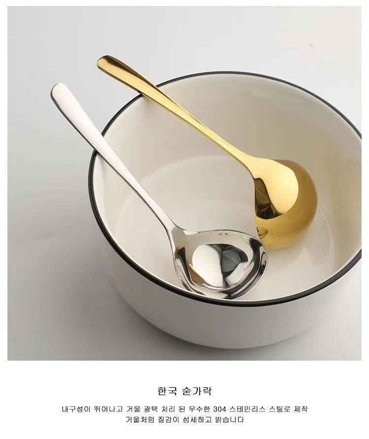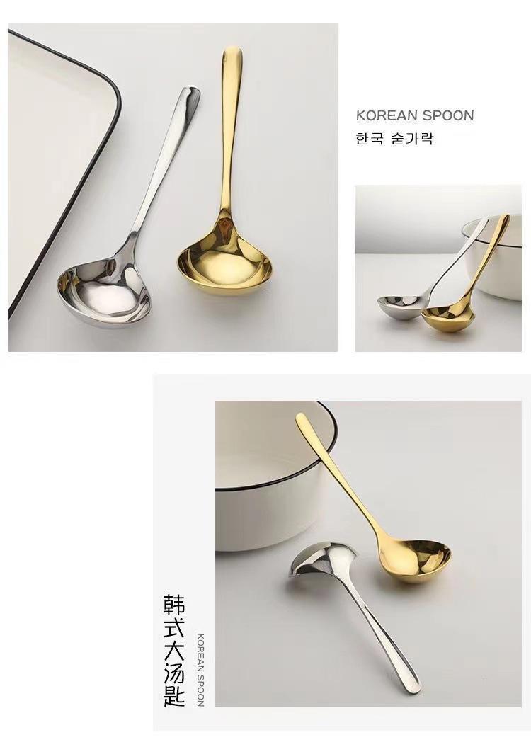 Colher de aço inoxidável de alta aparência, cabeça quadrada coreana, espessada, doméstica, internet, celebridade, colher de sopa, comer lanterna, alça longa, k