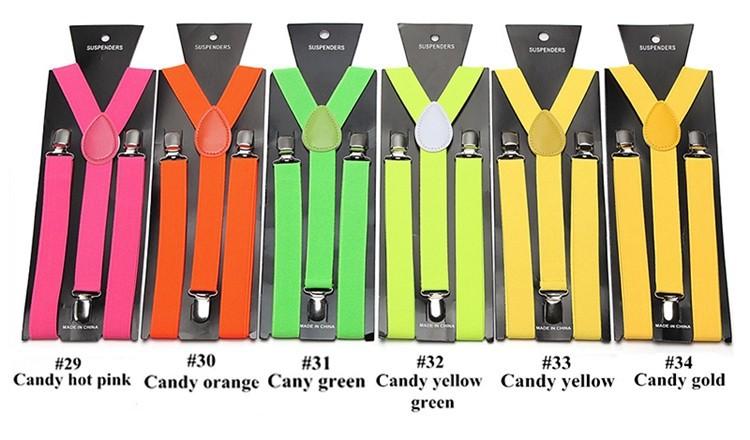 Atacado 2019 Adulto Cor Doce Cor Sólida Suspensórios Elásticos de Três Clipes Masculinos e Femininos