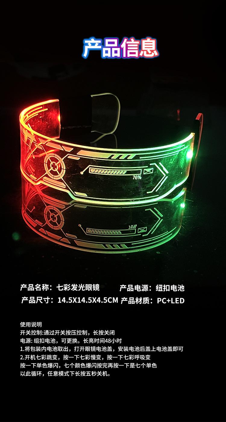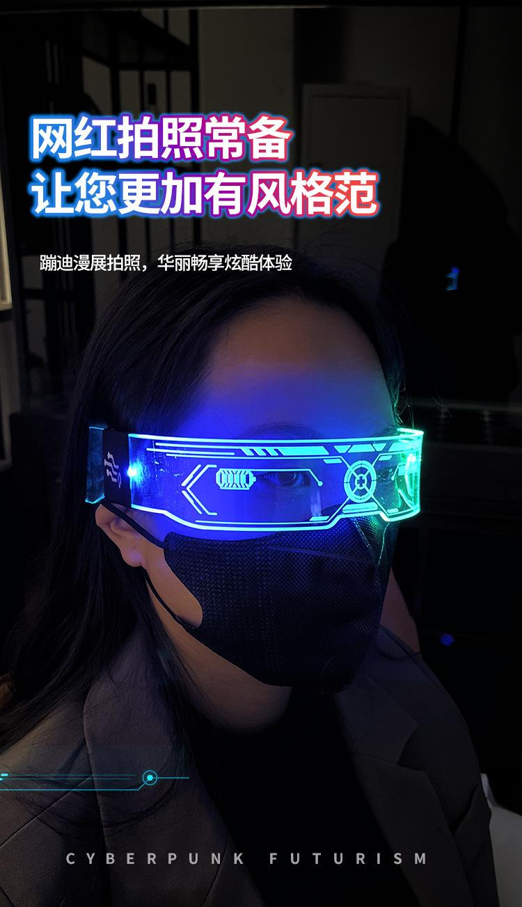 Óculos de Tecnologia Futura Estilo Cyberpunk LED Colorido Legal Dança Foto Concerto Festival de Música