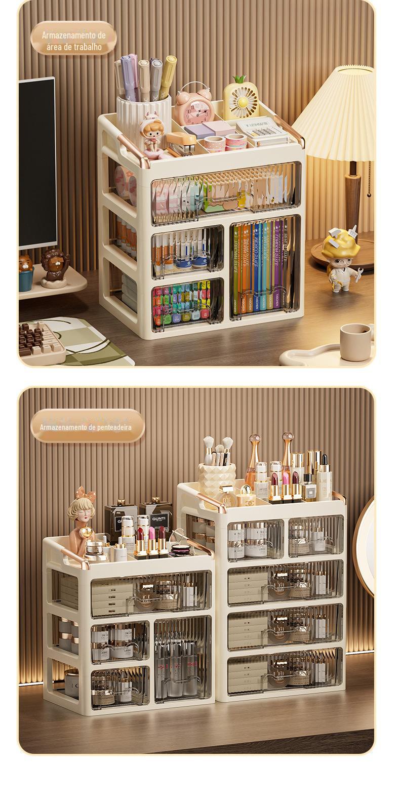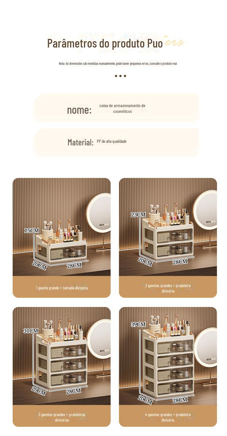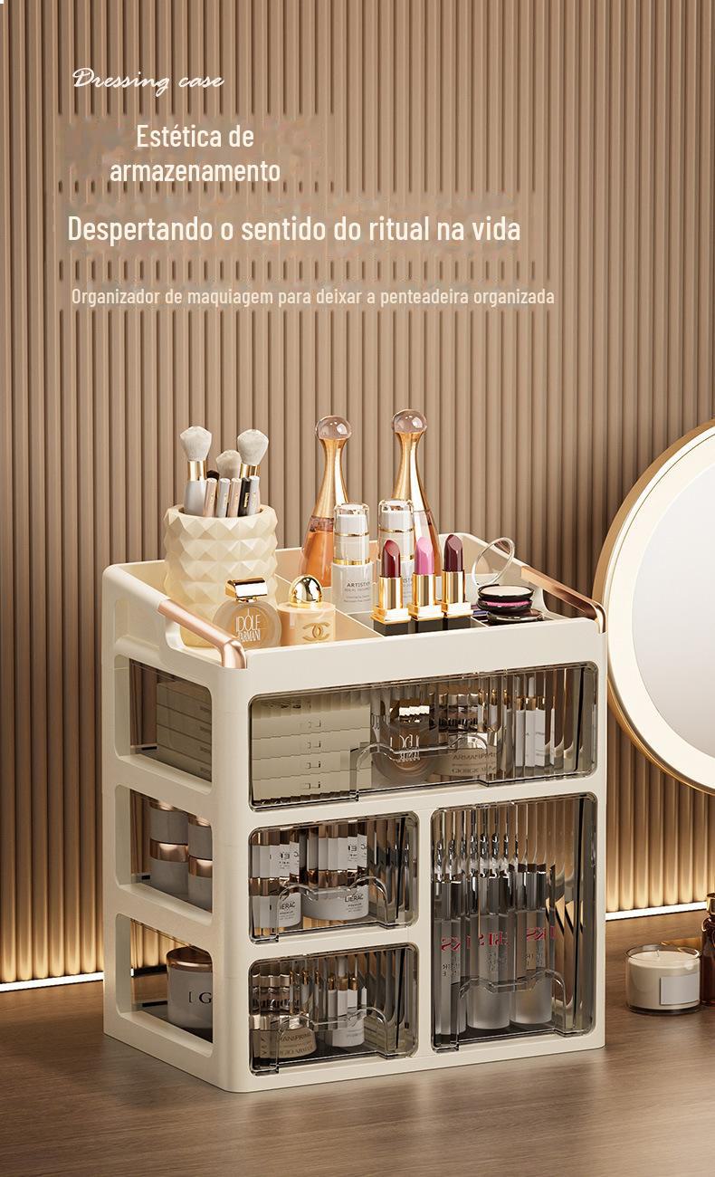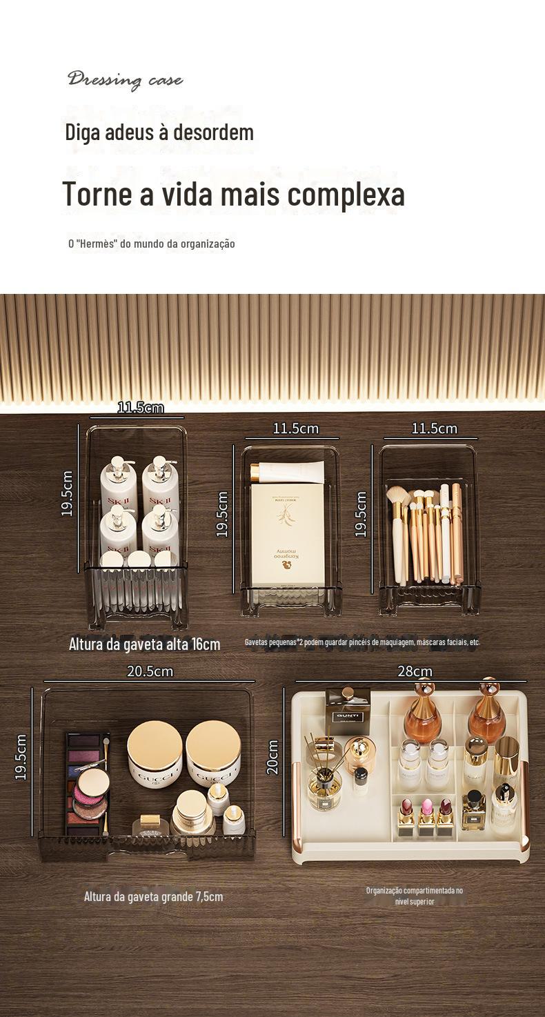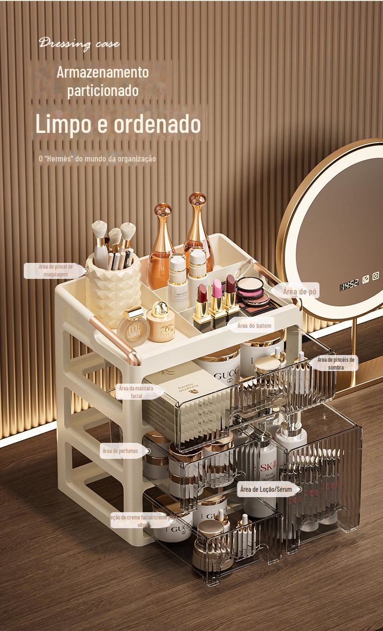 Caixa de Armazenamento de Cosméticos Tipo Gaveta Avançada para Penteadeira Batom Cuidados com a Pele Caixa de Armazenamento de Mesa Rack de Armazenamento de Joias