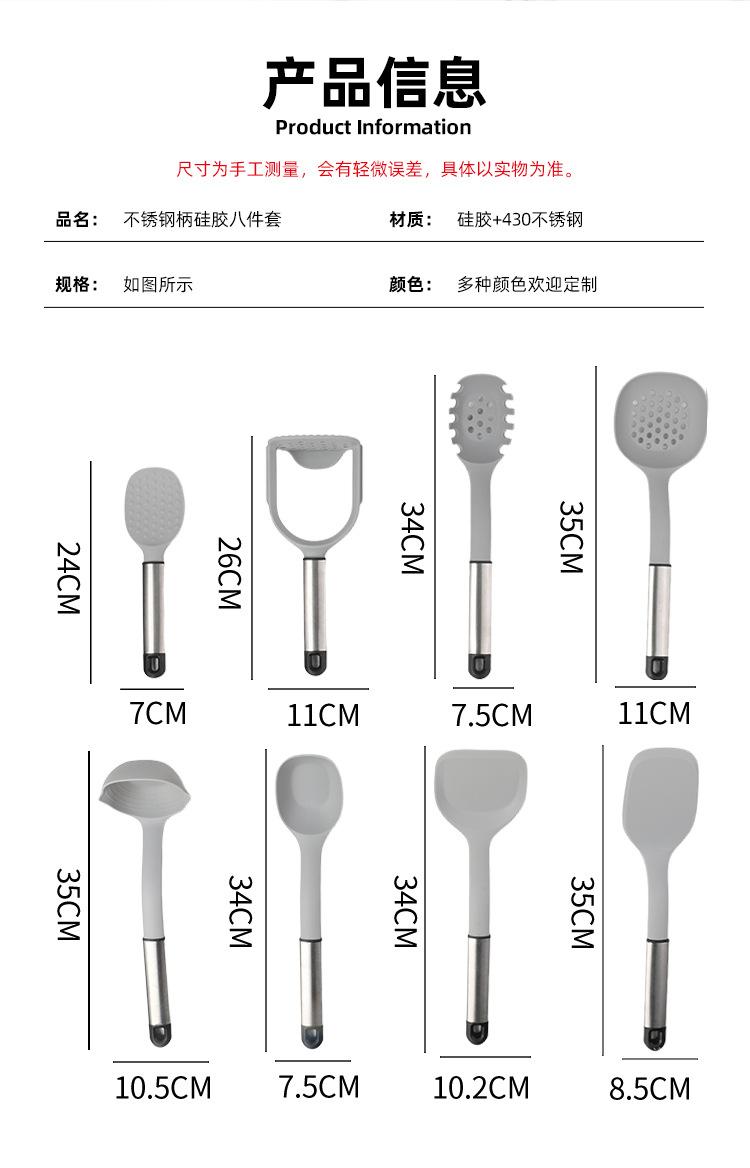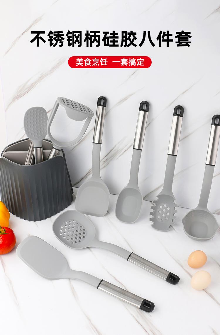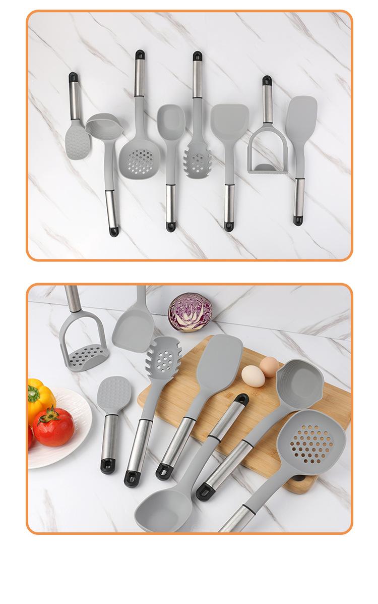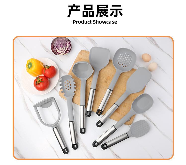 Compre Conjunto de espátula de silicone e escorredor transfronteiriço com cabo de aço inoxidável, utensílios de cozinha de silicone, conjunto de 9 peças, conjunto de espátulas de silicone antiaderente no atacado no Joom.pro