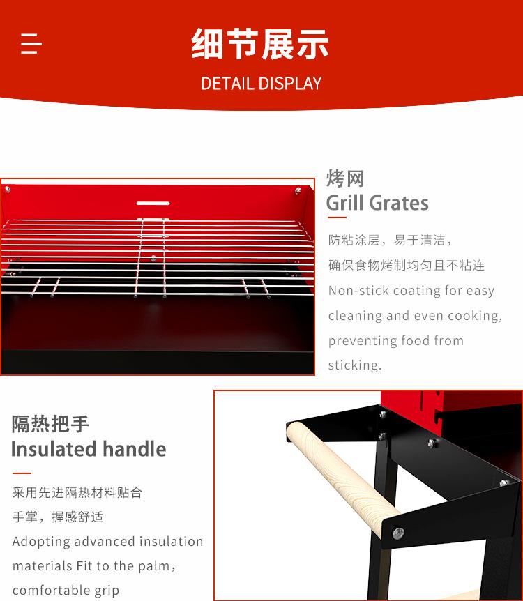 Grelha de churrasco simples com altura ajustável por atacado, grelha para exterior, grelha retangular a carvão, grelha para churrasco para acampamento ao ar livre