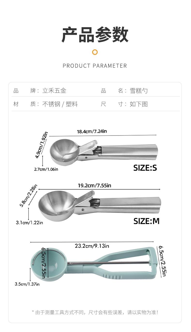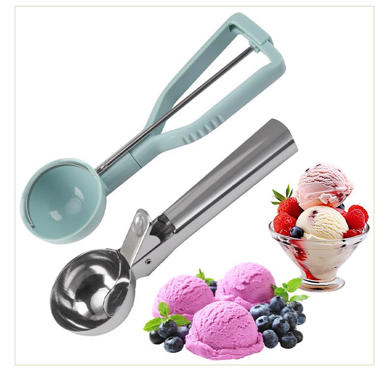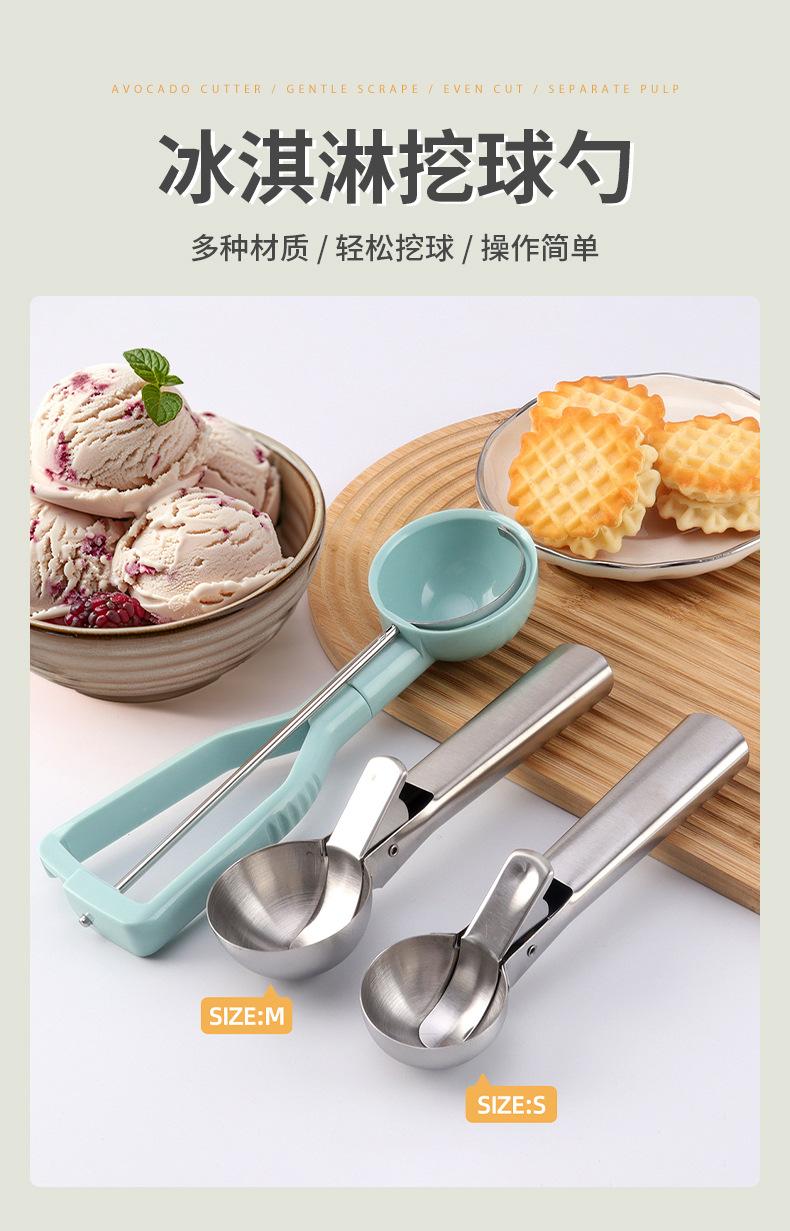 Colher Escavadora de Sorvete Escavadora de Bolas Aço Inoxidável Espessada Sorvete Quantidade Sorvete Colher de Plástico Rebound Artefato Escavador de Bolas de Fruta
