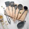 Utensílios de cozinha de silicone com cabo de madeira branco leitoso transfronteiriço, conjunto de 11 peças, panela antiaderente, espátula para cozinhar, colher de sopa, conjunto de ferramentas de cozinha