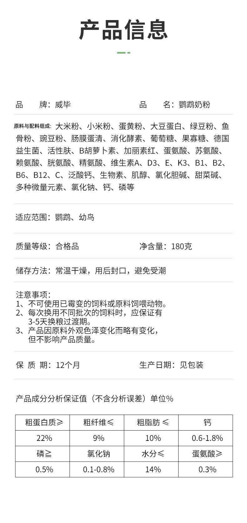 Parrot milk powder 180g/bottle, Feeding spoon, Feeding tube, Weibi parrot milk powder 180g free feeding set