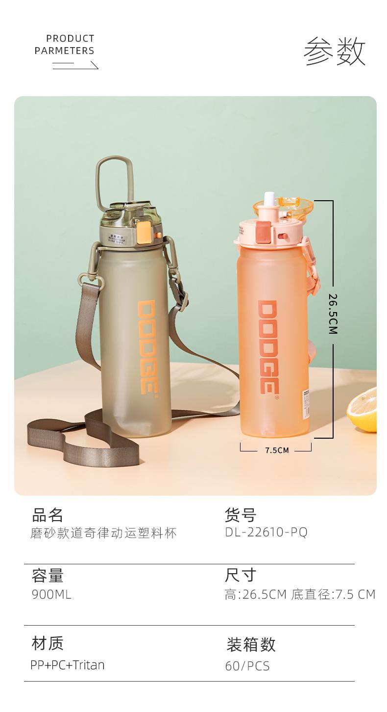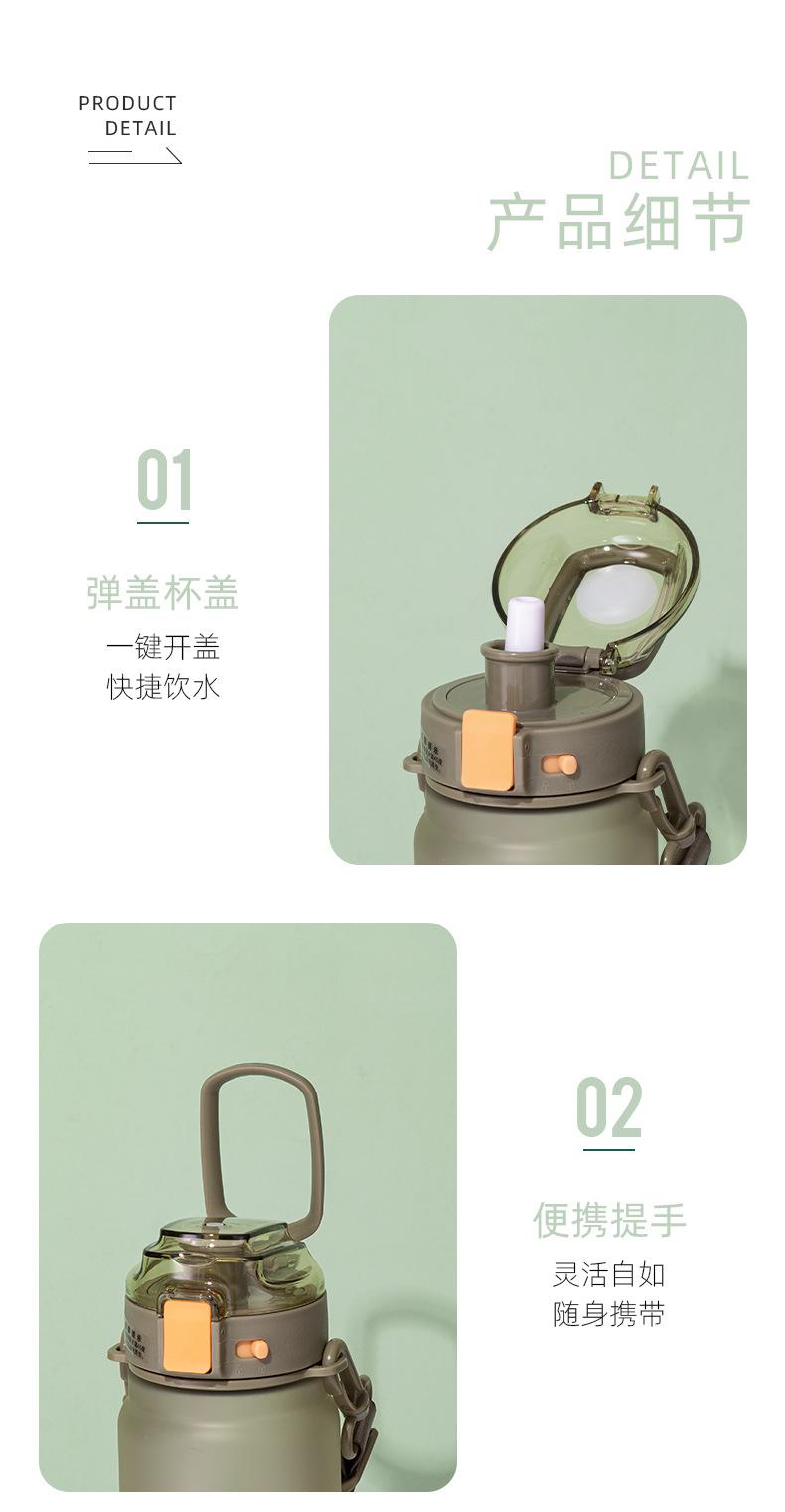 Copo de plástico esportivo fosco de grande capacidade com alça, copo com canudo para fitness ao ar livre, tampa flip, copo prático para viagem para casal