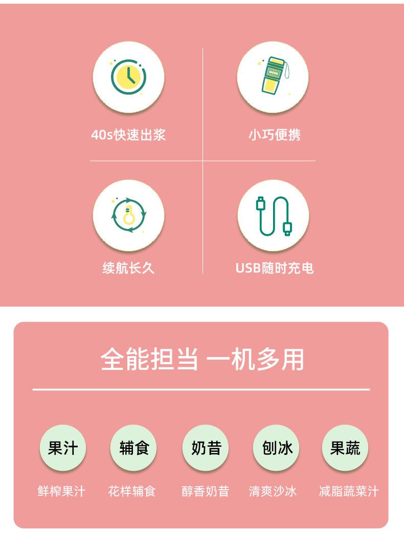 Break the wall, Complementary food nutrition, Portable charging, Automatic cleaning, Quick pulp discharge
