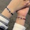 Pulseira de Corda Vermelha, Pulseira Empilhada de Casal Bestie Pequena e Fresca, Pulseira Trançada com Pingente de Cruz Turquesa Coração de Pêssego