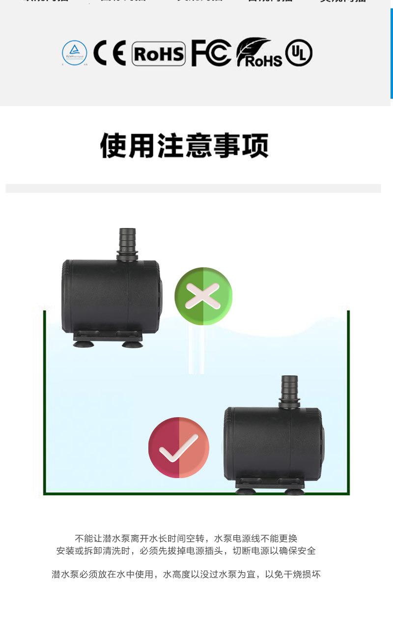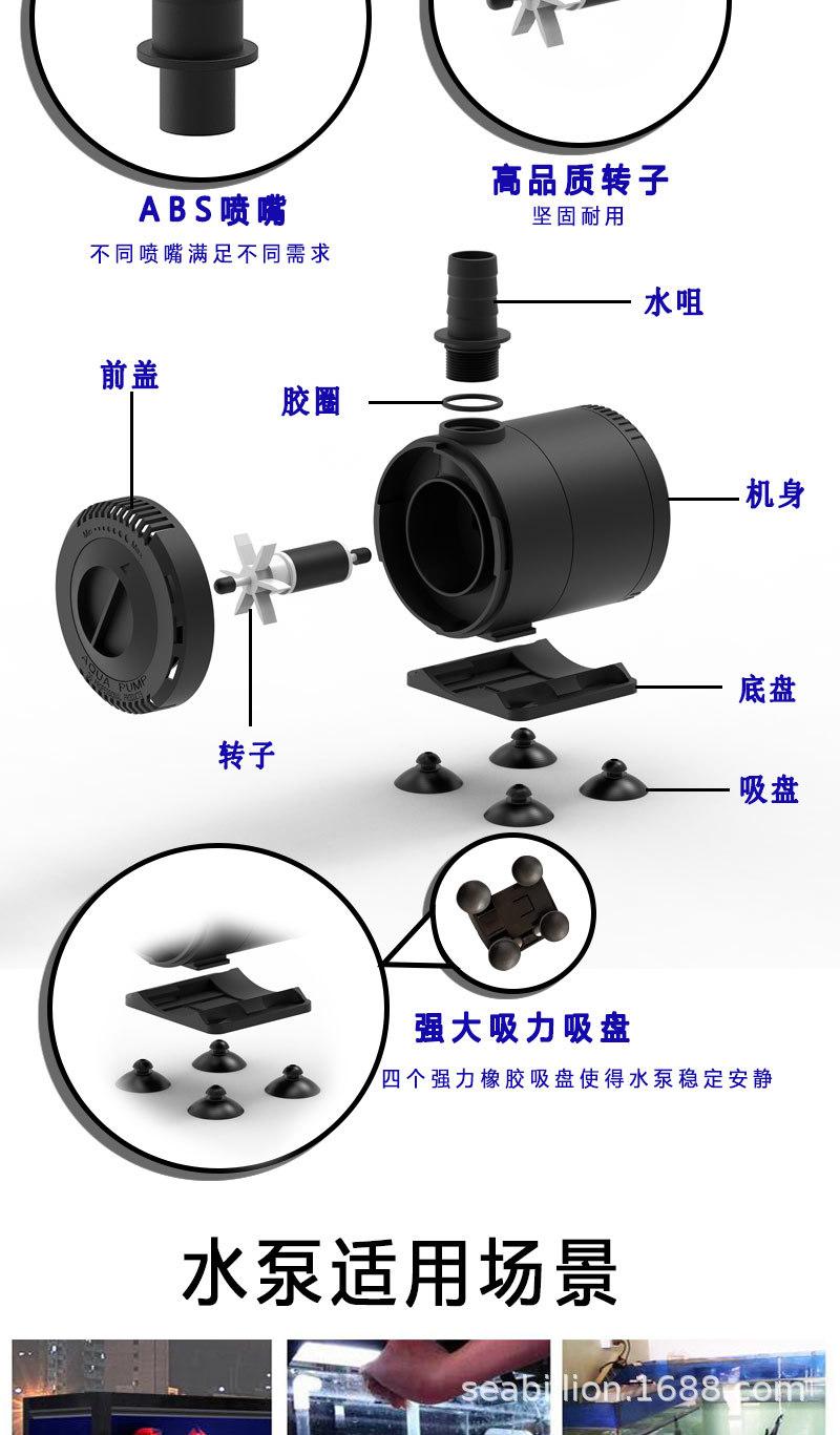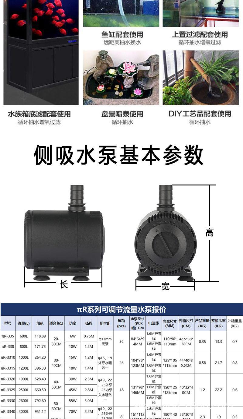 Bomba de Água Submersível Pequena Silenciosa de Grande Vazão Ajustável com Sucção Lateral para Aquário Transfronteiriço, Circulação e Filtragem, Bomba para Troca de Água