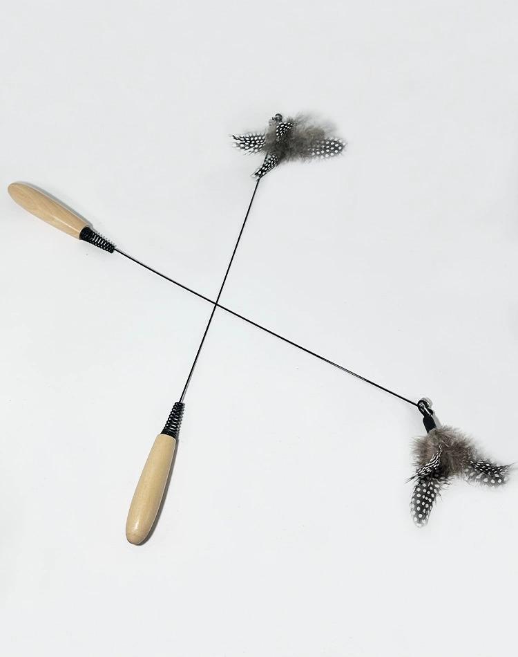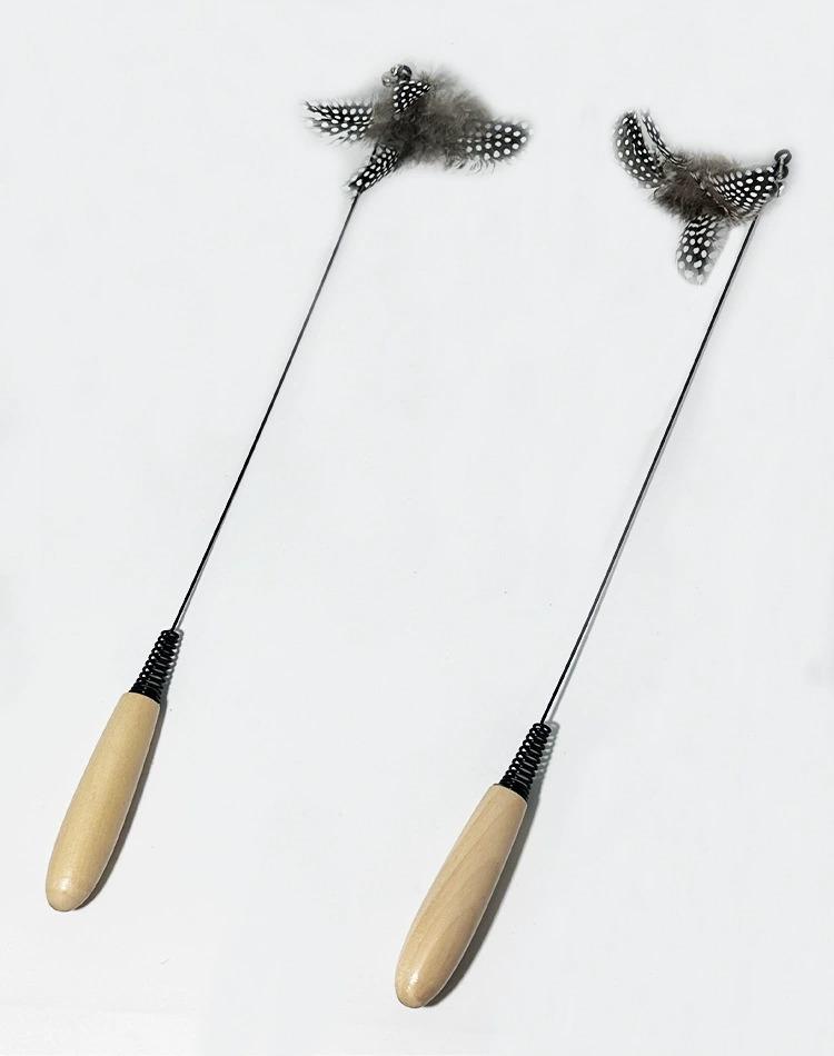 Cat teasing stick with wooden handle + white feathers, Cat teasing stick with wooden handle [cfa competition g...