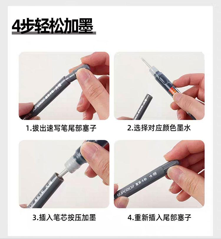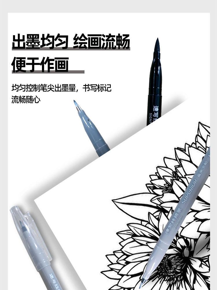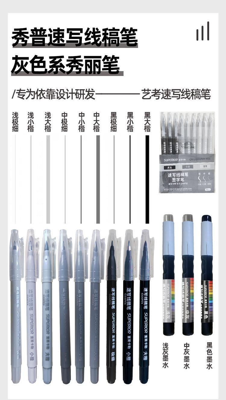 Caneta Marcadora de Esboço Xiu Pu Fulai Kaler Caneta para Desenho de Linha Assinatura Impermeável Ponta Macia Cinza Caneta de Beleza Tinta Recarregável Caneta Delineadora