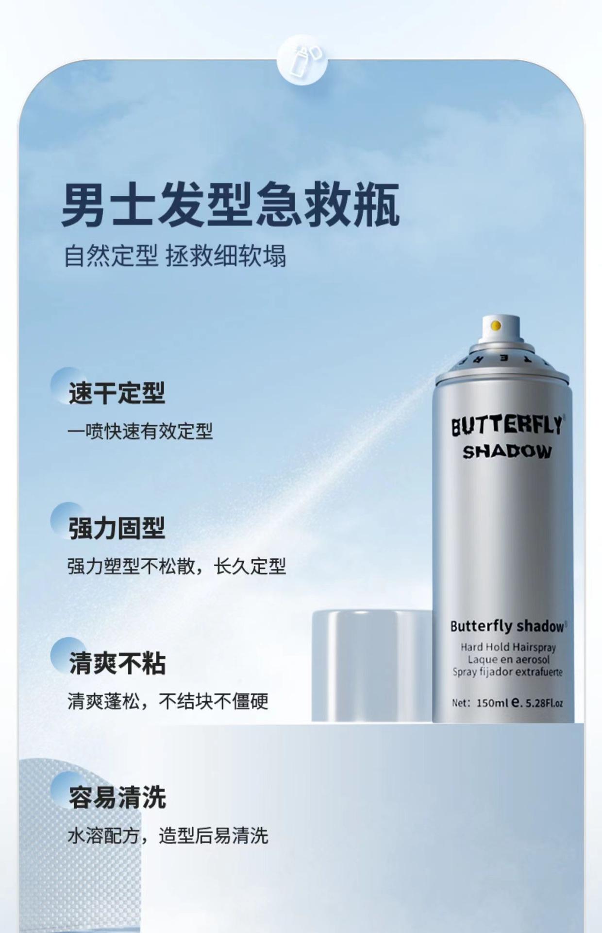 Sombra de borboleta Sombra de borboleta limpeza frasco grande cola seca cabelo fofo extra forte modelagem de longa duração gel para cabelo masculino