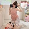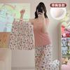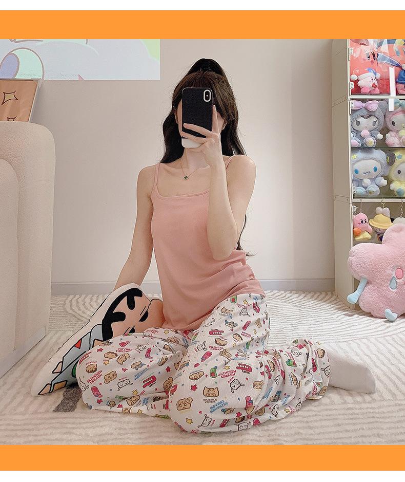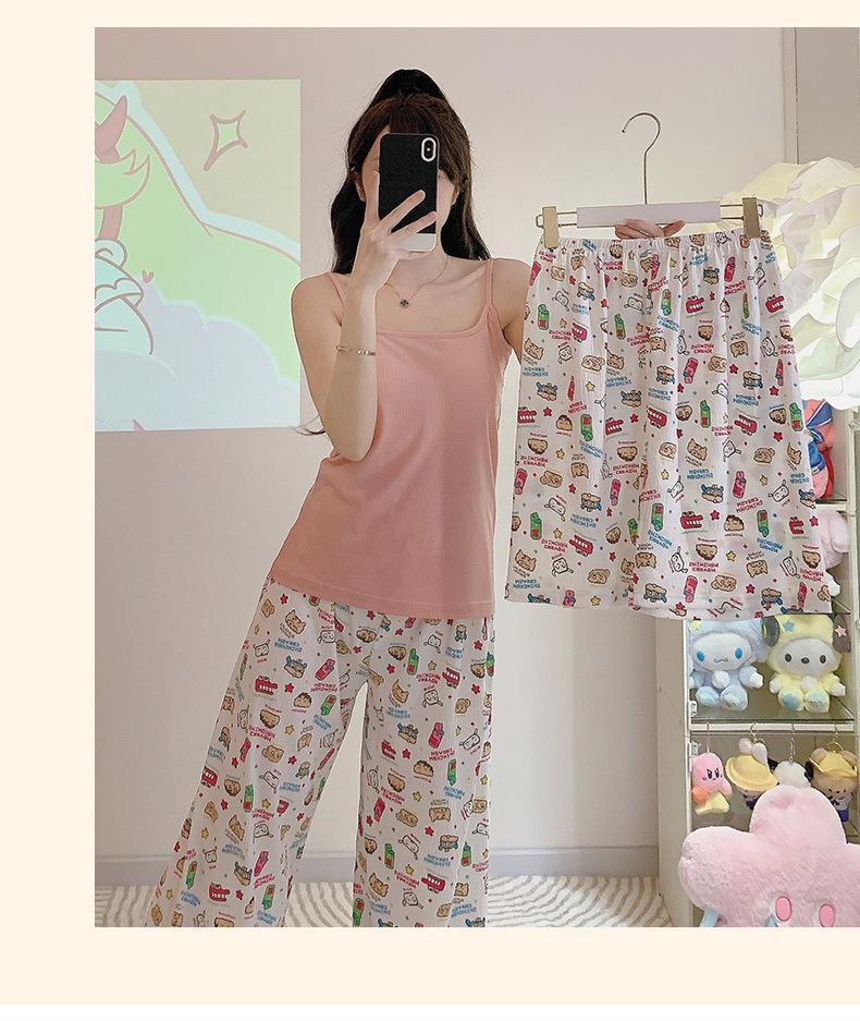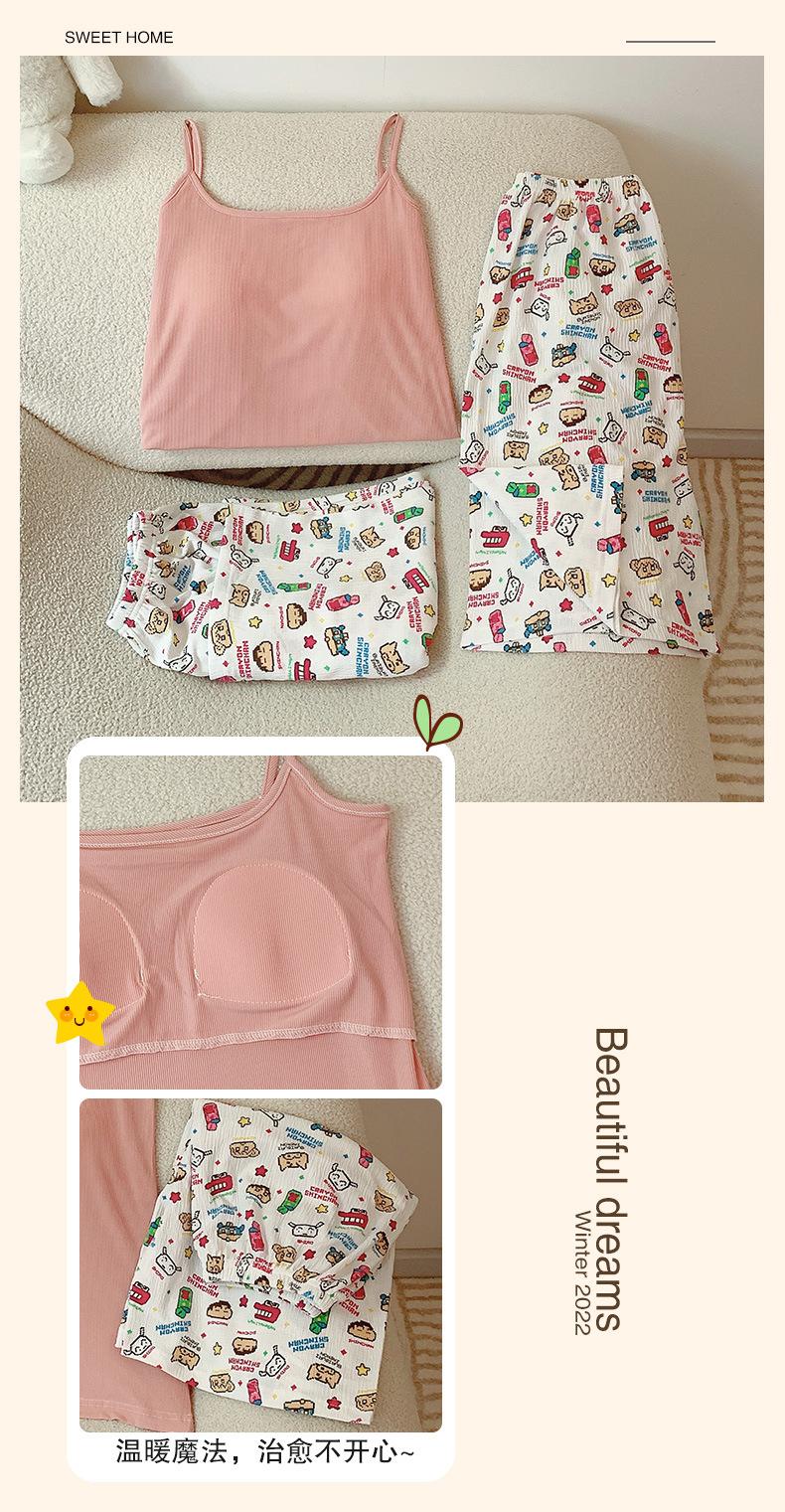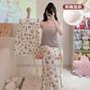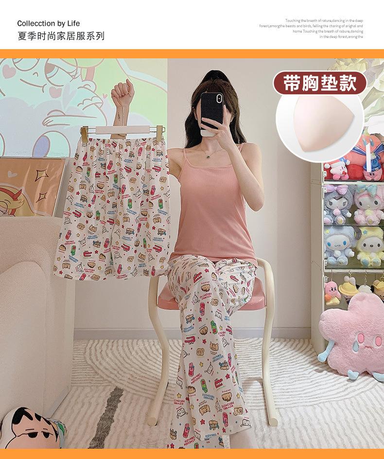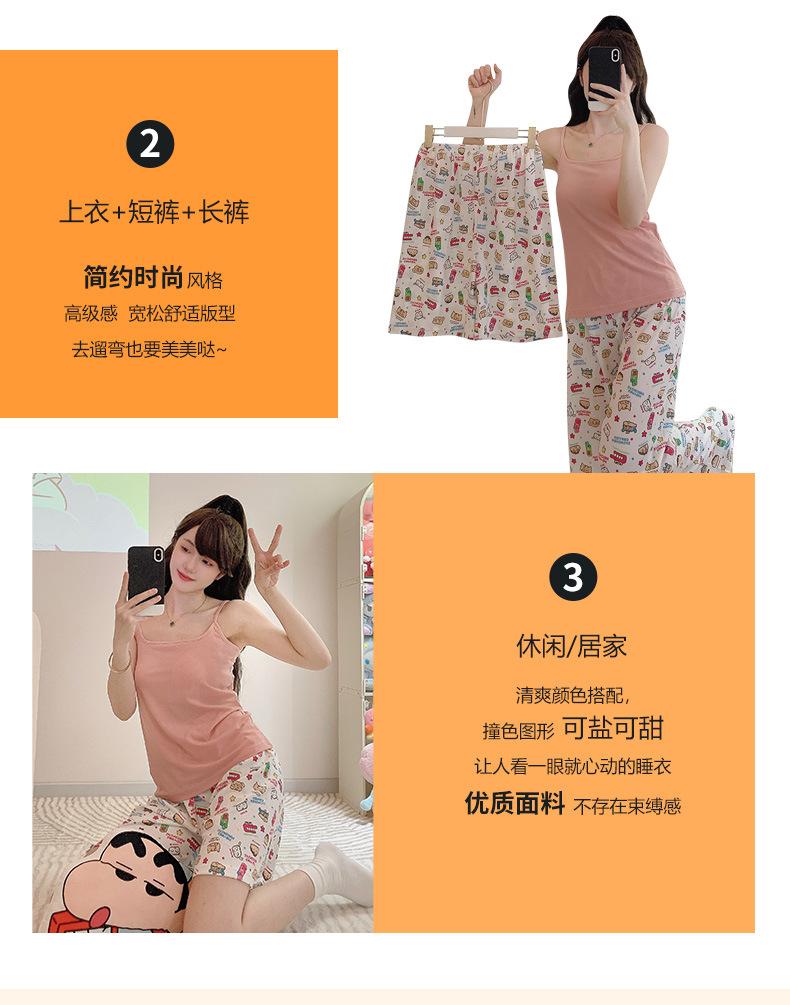 Pijama de Alça com Fio de Seda Gelo Conjunto Feminino de Três Peças com Bojo Novo Verão Calções Calças Roupa de Casa Fina