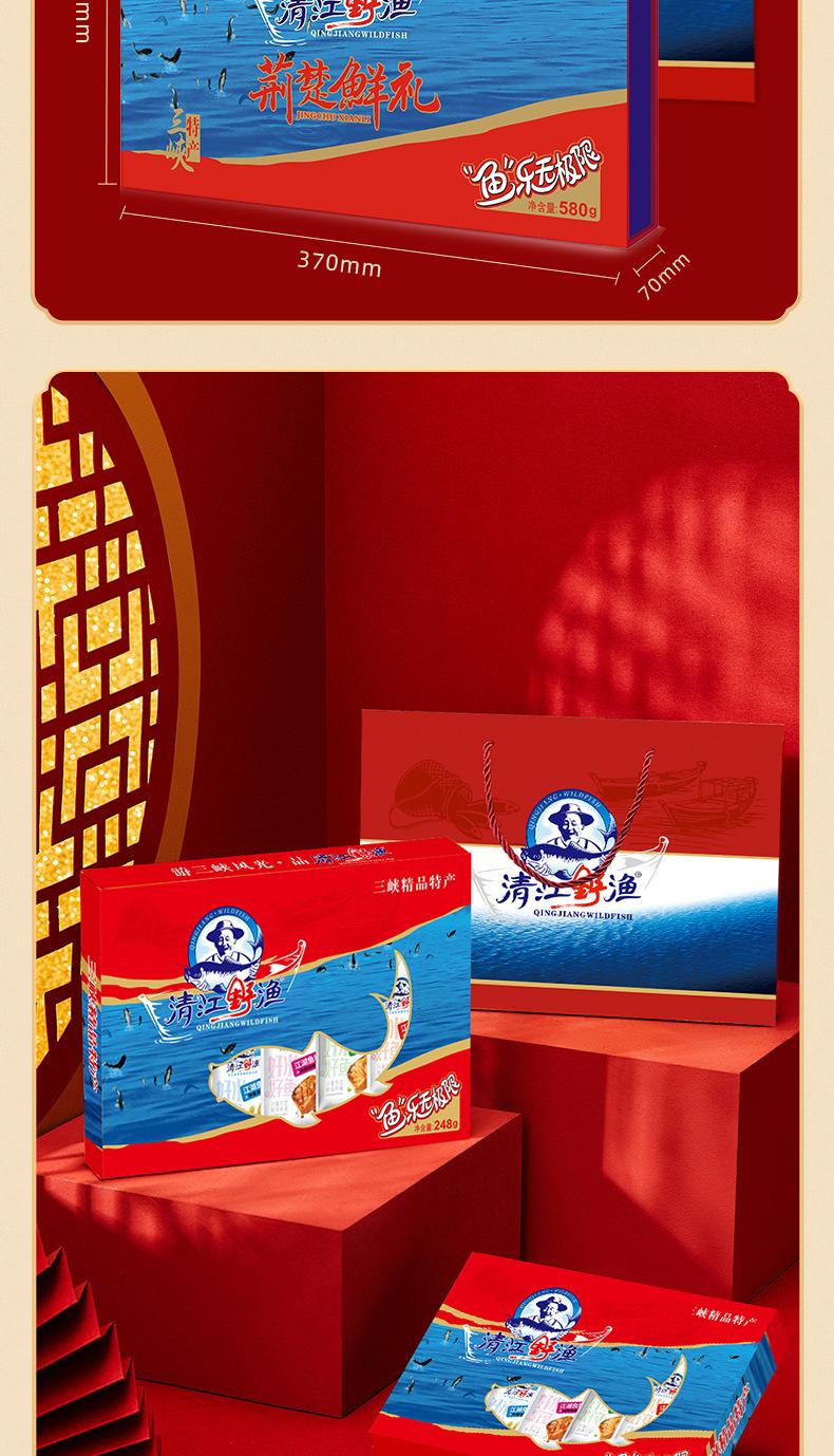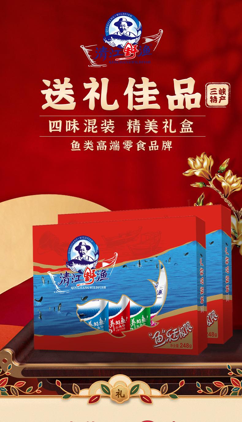 Tulaohan Qingjiang Peixe Selvagem 248g*2 Caixa Peixe Wuhan Yichang Especialidade Três Gargantas Ferrovia de Alta Velocidade Aeroporto Caixa Presente de Feriado