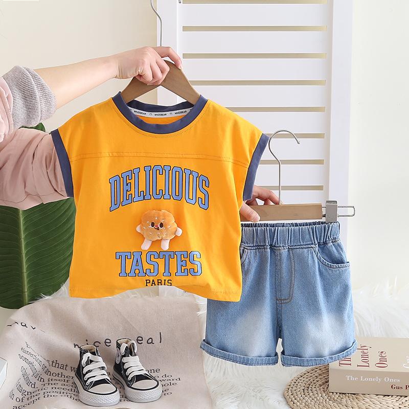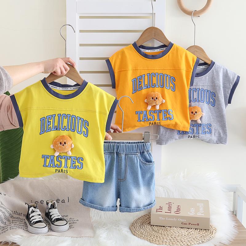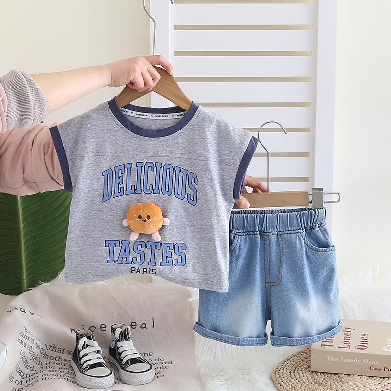 Roupas de Verão para Meninos 2025 Novo Terno de Verão Infantil Camiseta Desenho Animado Conjunto de Duas Peças 1-5 Anos Menino Roupa Esportiva