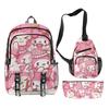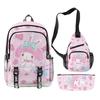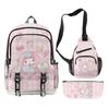 3D Novo Perímetro Impresso Sanrio Merleti Mochila Escolar Mochila Bolsa de Lápis Conjunto de Três Peças