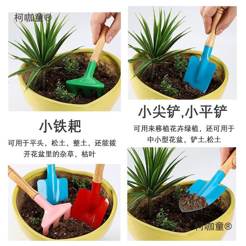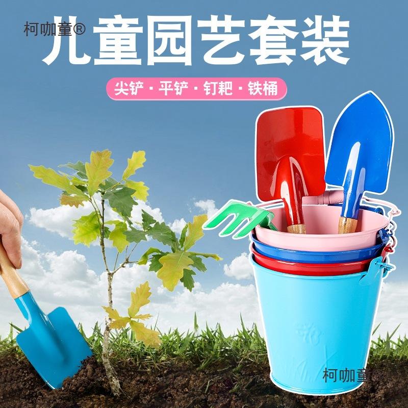 Conjunto de Três Peças de Pá de Jardinagem Infantil para Plantar Plantas Suculentas em Vasos, Pá, Ferramentas para Plantar Árvores, Balde de Ferro para Praia, Cavar Areia, Metabo