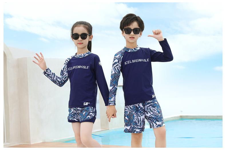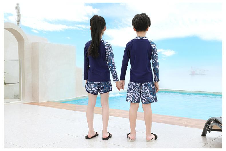 Fato de Mergulho de Casal Dividido em Duas Peças de Verão de Manga Comprida Conservador Fato de Família para Quatro e Três Fatos de Banho Roupa de Banho Pai-Filho