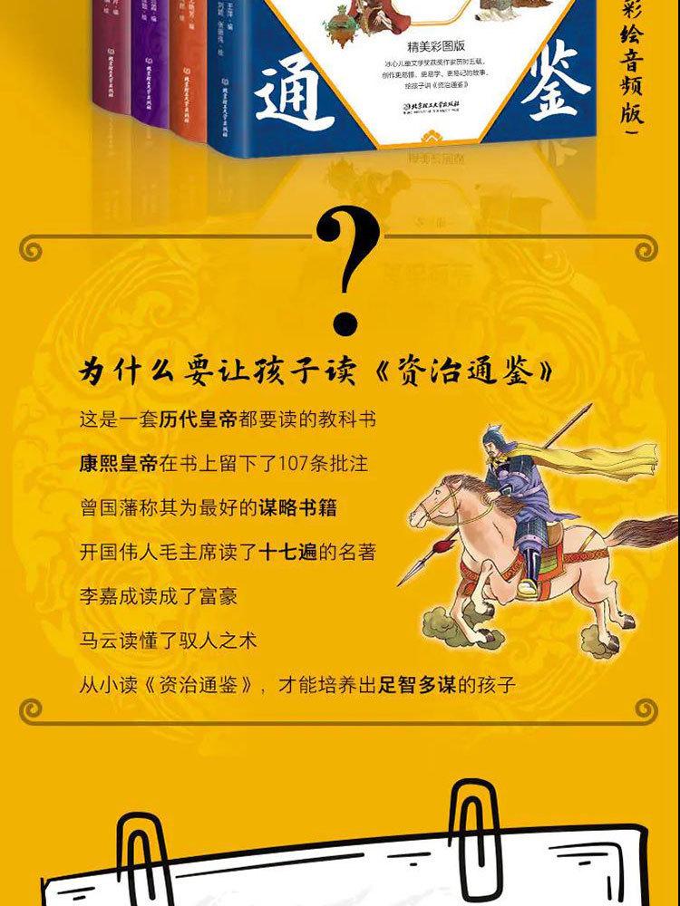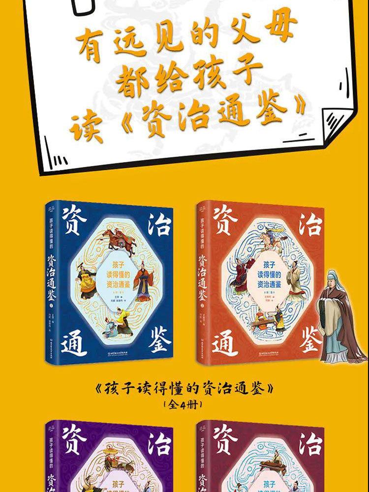 Zizhi Tongjian Autêntico, 4 Volumes de Clássicos Chineses que Crianças Podem Entender, Clássicos Chineses, Livros de Iluminação para o Ensino Fundamental com Versão Áudio em Cores
