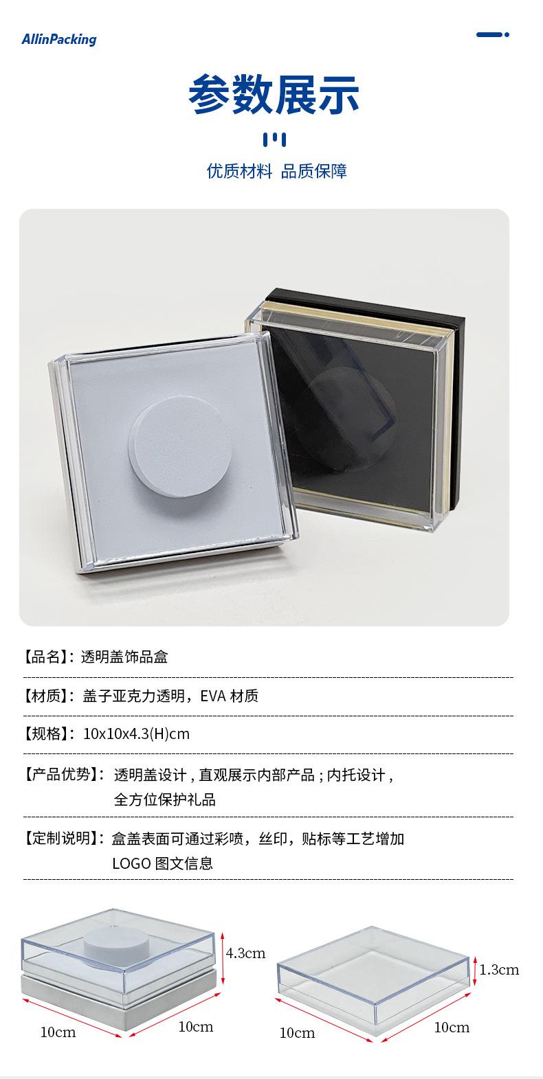 Capa Quadrada Transparente de Acrílico, Caixa de Embalagem para Joias de Armazenamento para Exibição à Prova de Poeira, Caixa de Presente para Anel Colar Pulseira