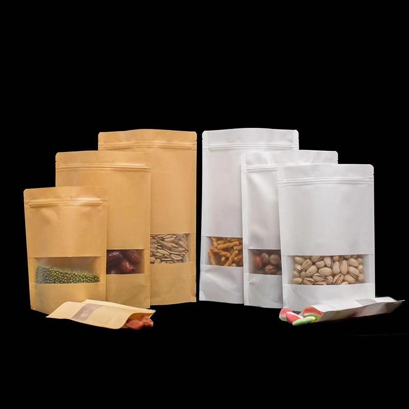 Sacos de Embalagem de Alimentos Papel Kraft Janela Auto-Sustentável Ziplock Atacado Sacos Selados Impermeáveis para Alimentos Sacos Selados para Lanches