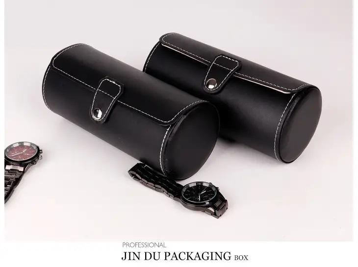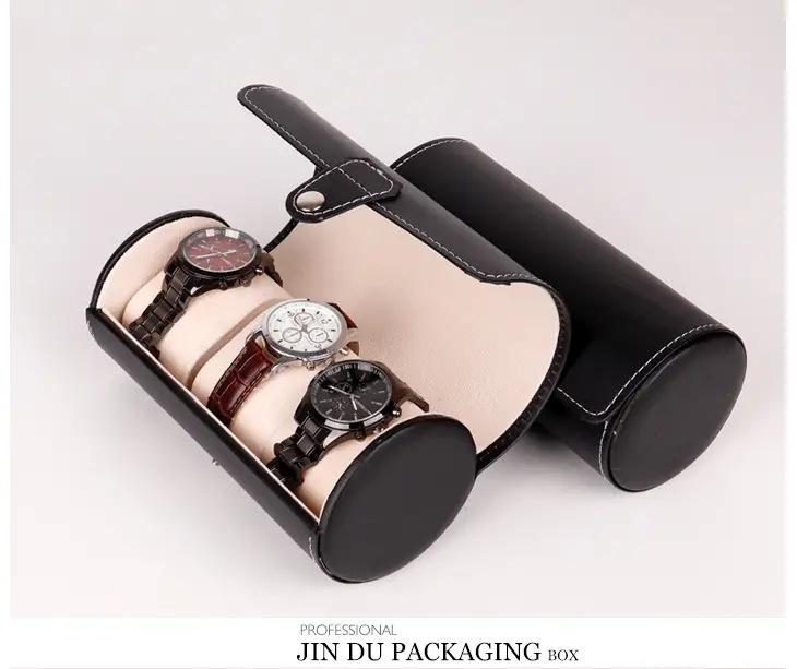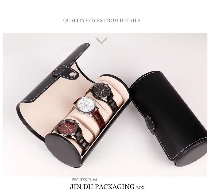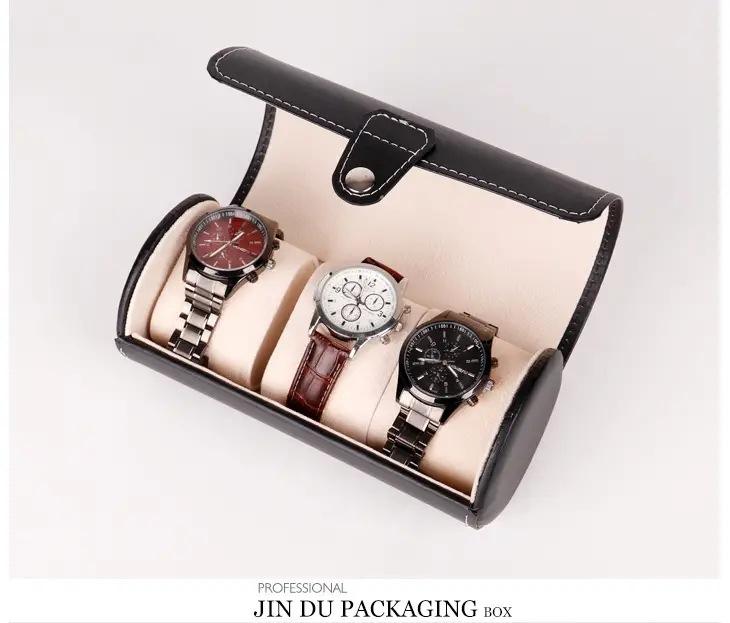 Fábrica em estoque atacado couro PU caixa de relógio de 3 cilindros caixa de embalagem para exibição e armazenamento de relógios e joias