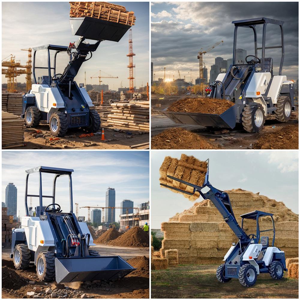 Empilhadeira elétrica pequena 1800W de alta potência, carregadeira de rodas com tração nas quatro rodas, escavadeira multifuncional