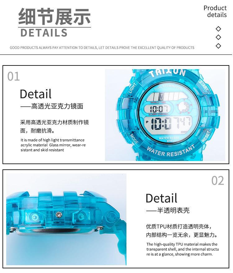 Relógio Infantil de Gelatina da Moda Relógio Infantil Relógio Eletrônico Luminoso Transparente à Prova d'Água para Exterior Menino Menina Estudante Relógio Esportivo