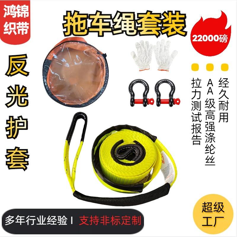 Fabricante Conjunto de Corda de Reboque de Malha Amarelo 5M22000Lbs Refletivo Off-Road Recuperação Resgate Corda