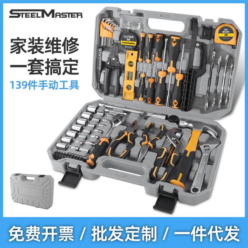 Caixa de ferramentas doméstica de 139 peças mais vendida, conjunto de ferramentas de hardware multifuncionais, kit de manutenção doméstica