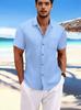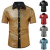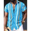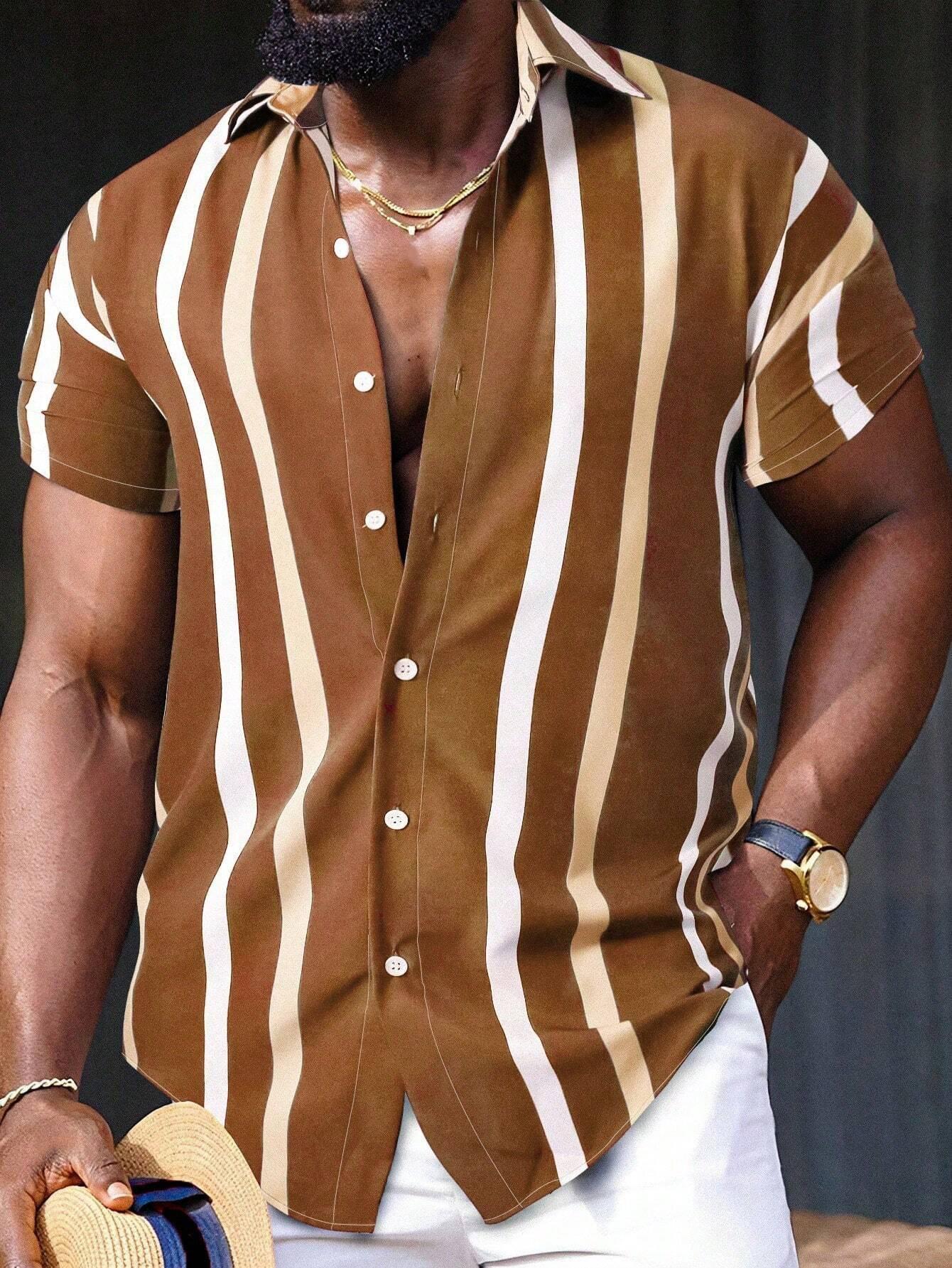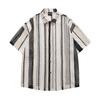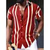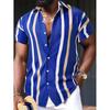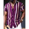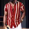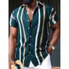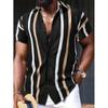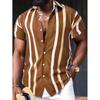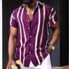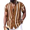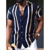 Exportação Transfronteiriça Europeia e Americana 2025 Nova Camisa de Manga Curta Listrada Masculina Tops Camisa de Lapela Estampada Solta e Fashion