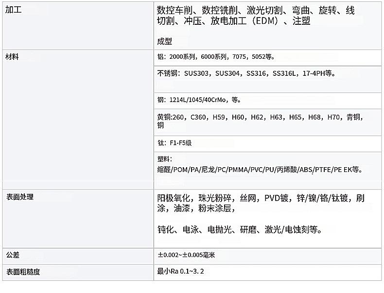 Aluminum alloy, stainless steel, iron, copper, plastic, titanium, steel