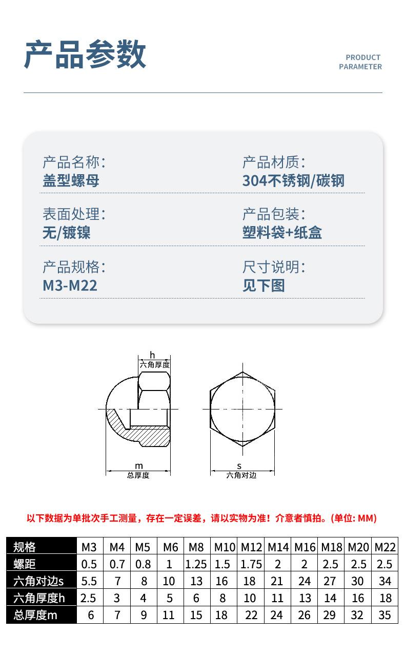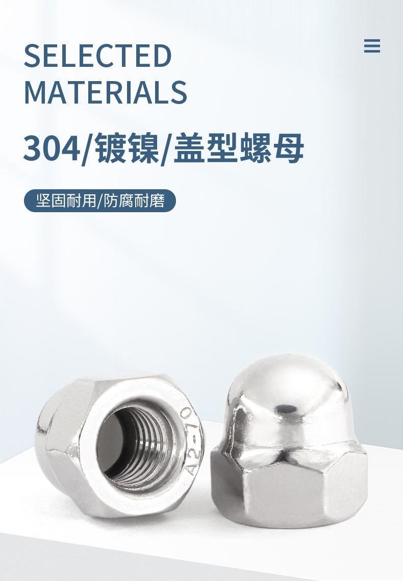 Porca calota de aço inoxidável 304 niquelada porca decorativa cabeça bola sextavada tampa de parafuso M3M4M5M22