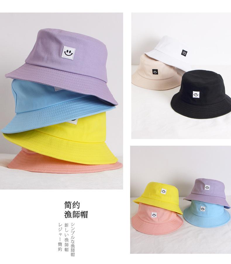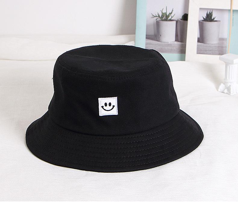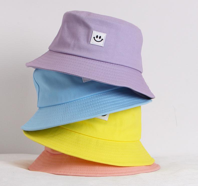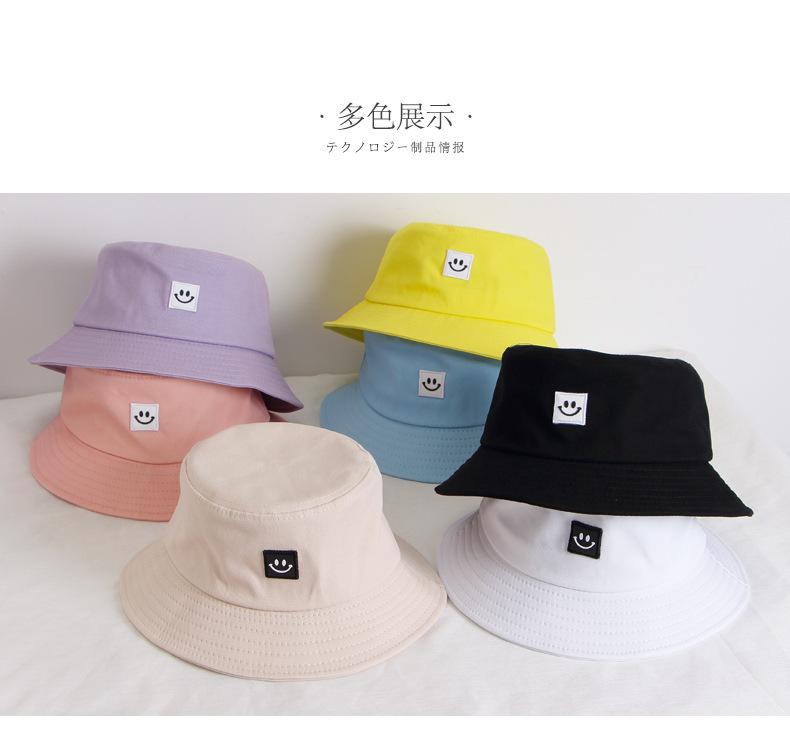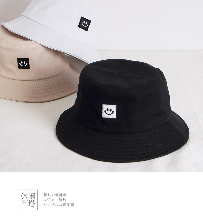 Chapéu Infantil Estilo Coreano para Crianças e Adultos Primavera e Verão Novo Bordado Carinha Sorridente Chapéu Balde Sombra e Proteção Solar Chapéu Pescador Familiar Moderno