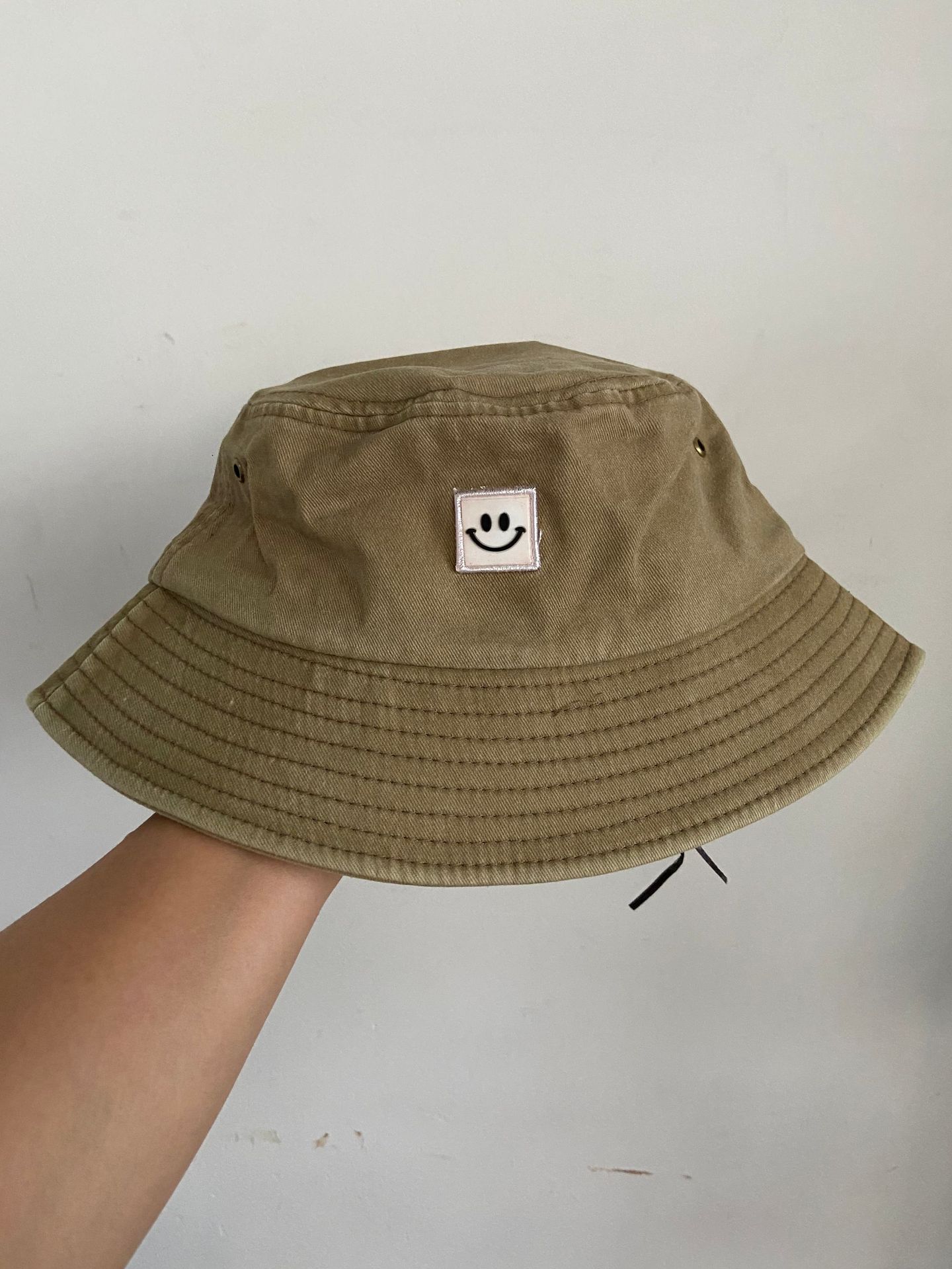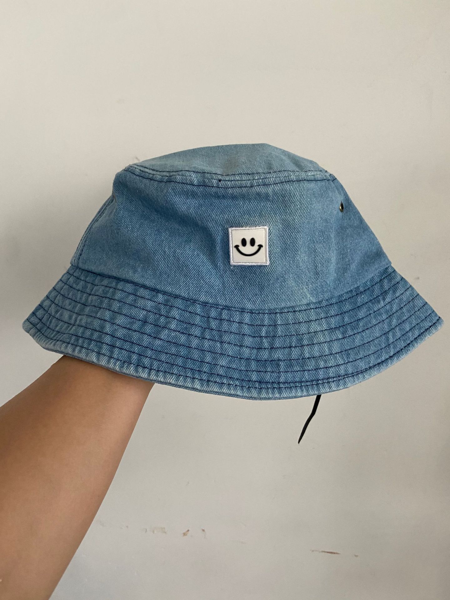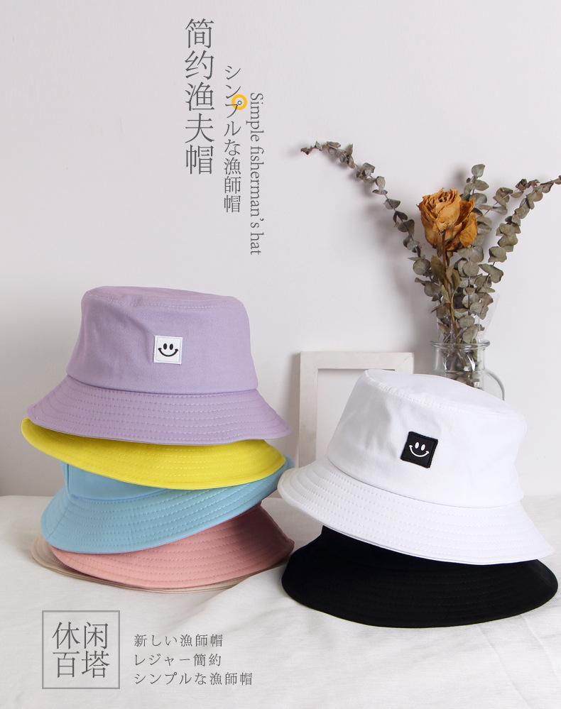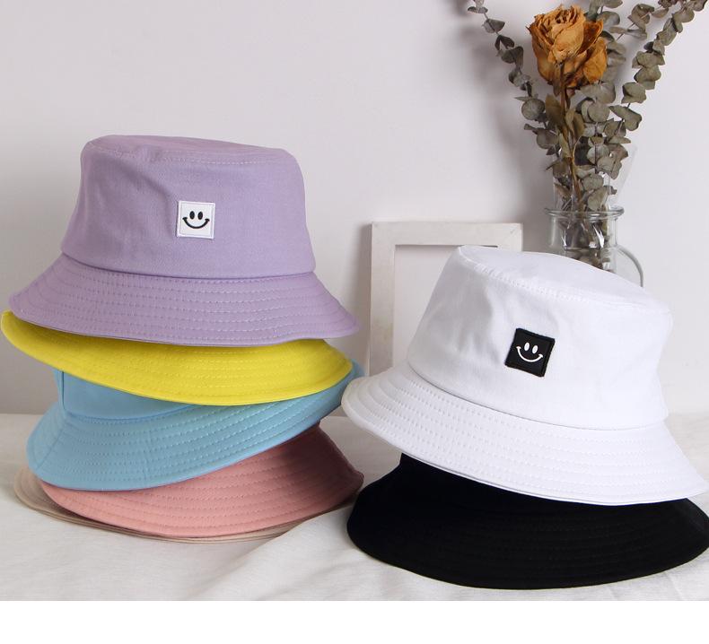 Chapéu Infantil Estilo Coreano para Crianças e Adultos Primavera e Verão Novo Bordado Carinha Sorridente Chapéu Balde Sombra e Proteção Solar Chapéu Pescador Familiar Moderno