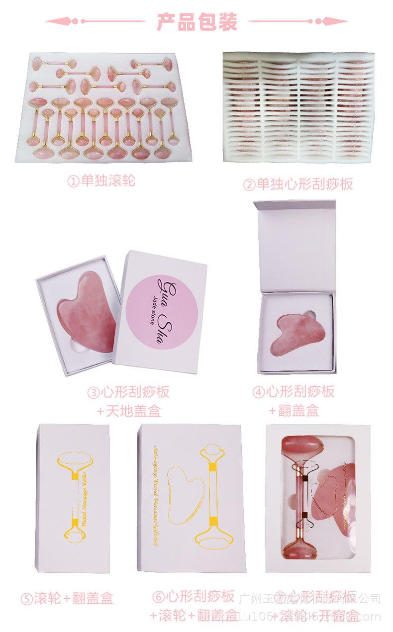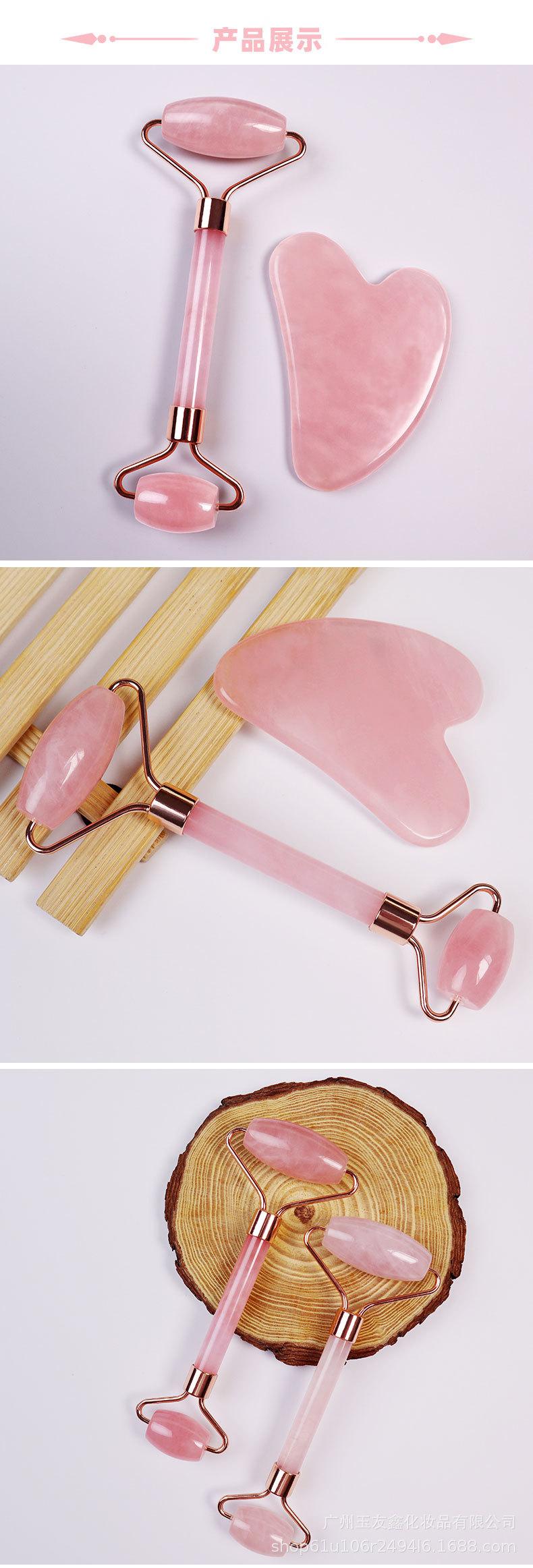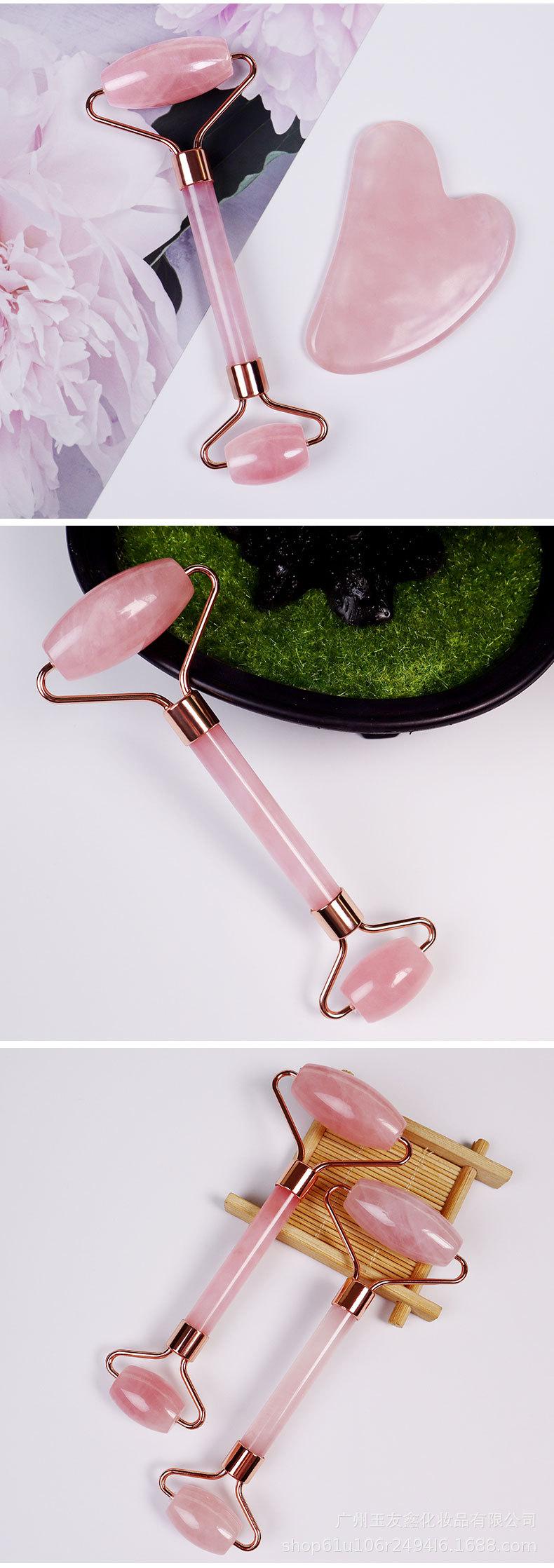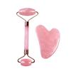 Massageador Facial de Quartzo Rosa e Jade com Rolo Duplo Mais Vendido da Amazon, Conjunto Combinado de Raspagem para Massagem Facial e Ocular em Forma de Coração