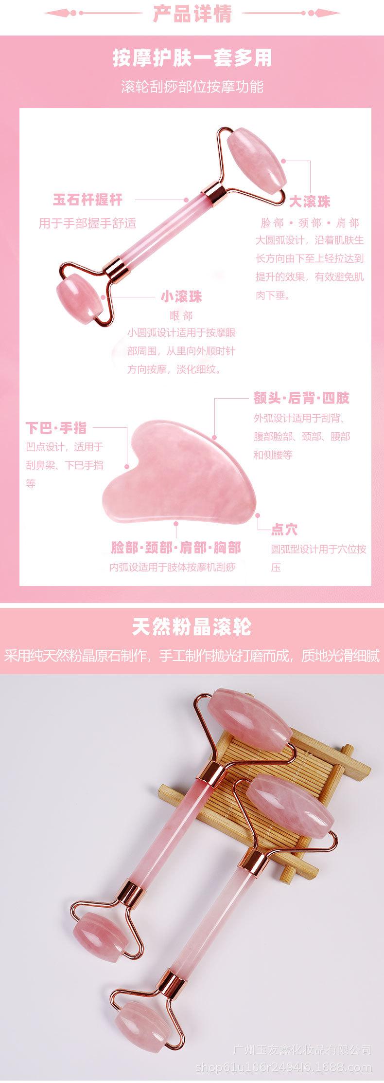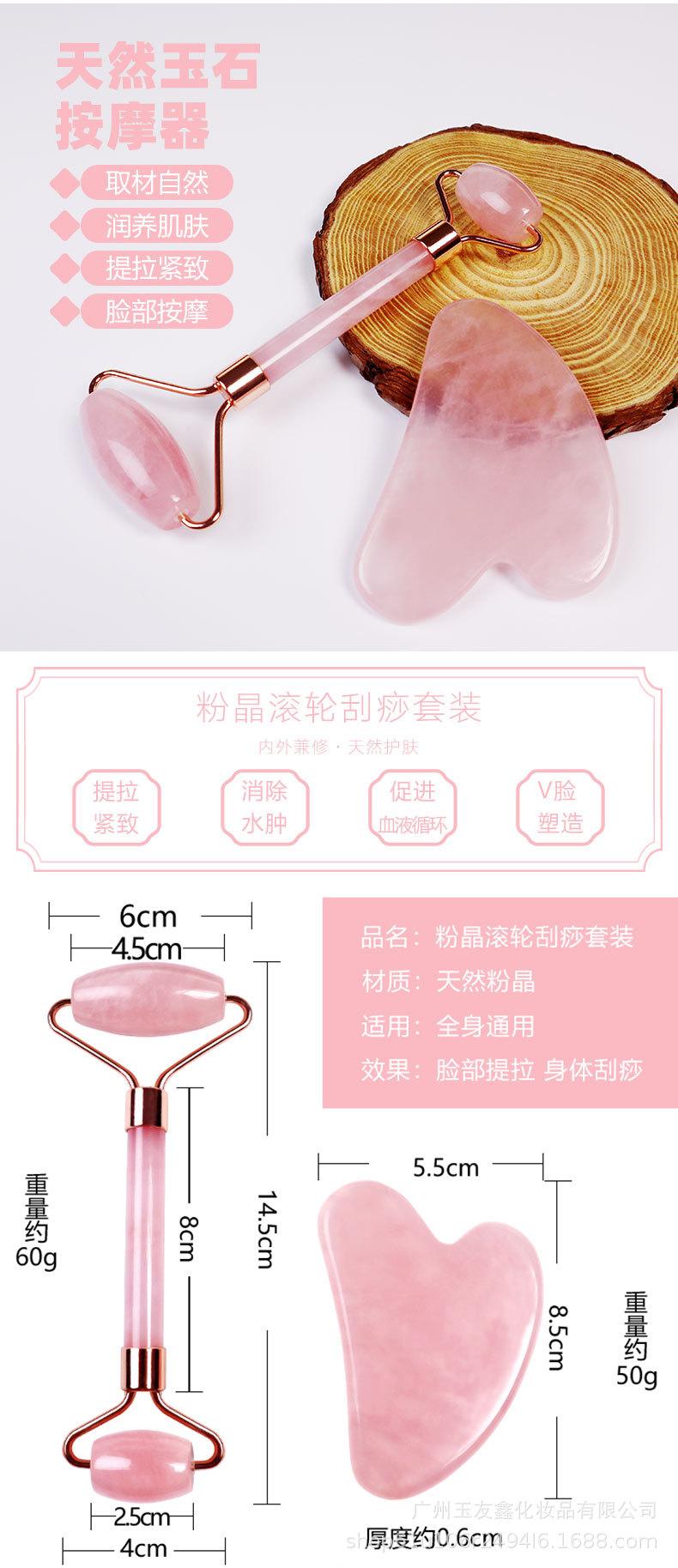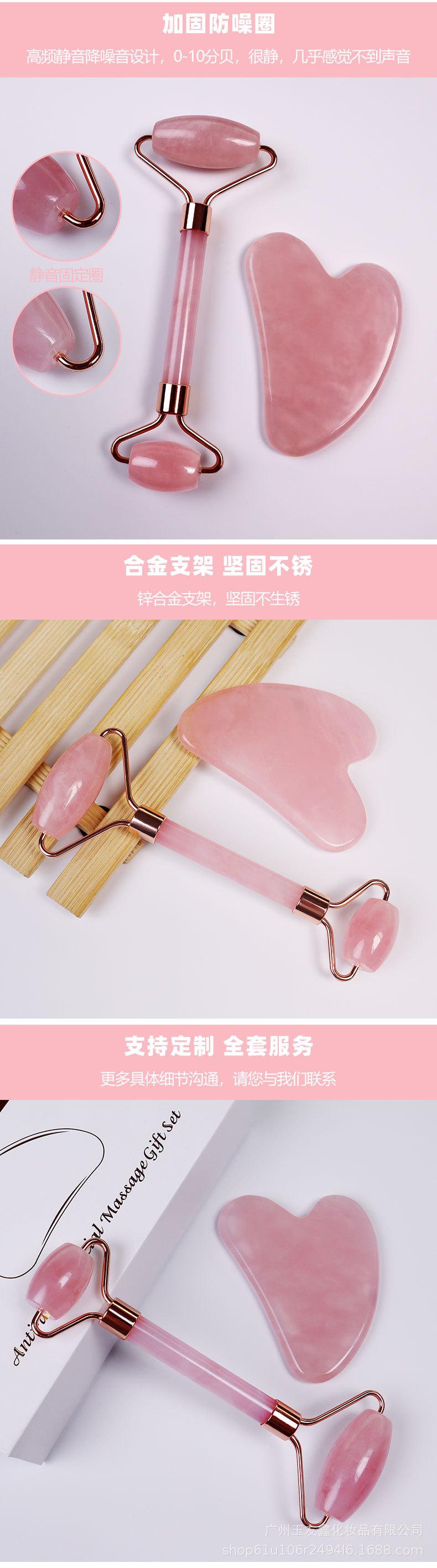 Massageador Facial de Quartzo Rosa e Jade com Rolo Duplo Mais Vendido da Amazon, Conjunto Combinado de Raspagem para Massagem Facial e Ocular em Forma de Coração
