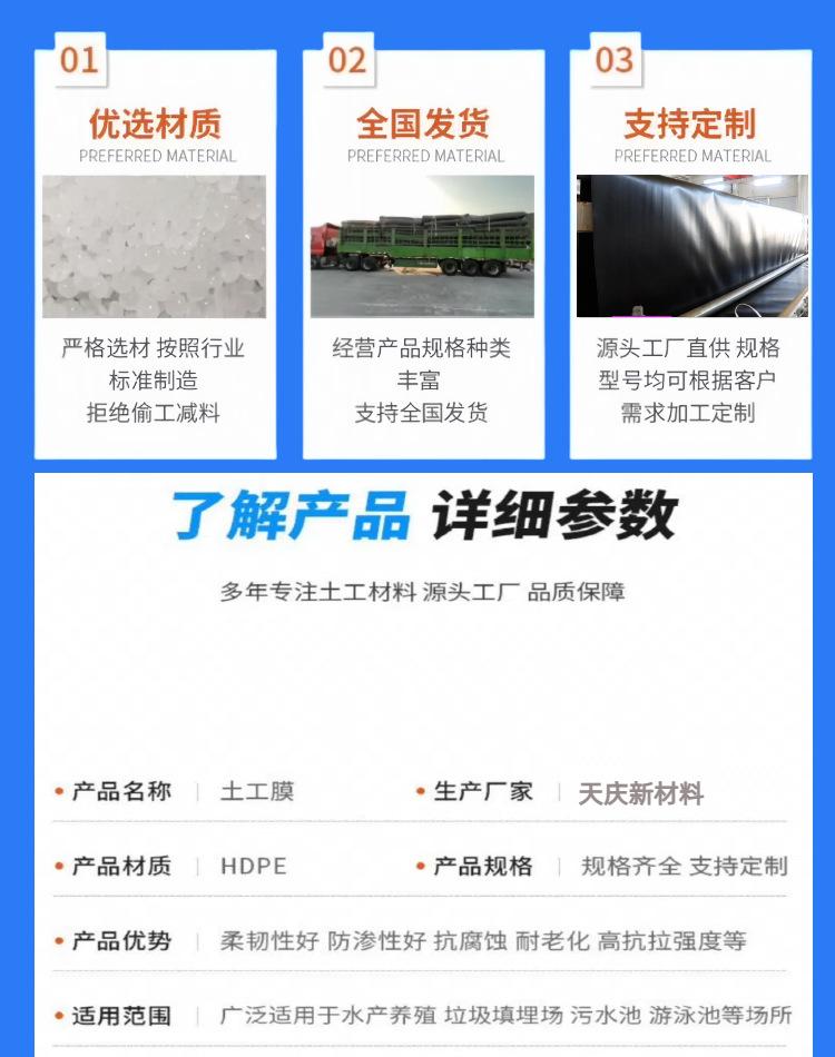 Smooth geomembrane polyethylene membrane geomembrane anti-seepage membrane