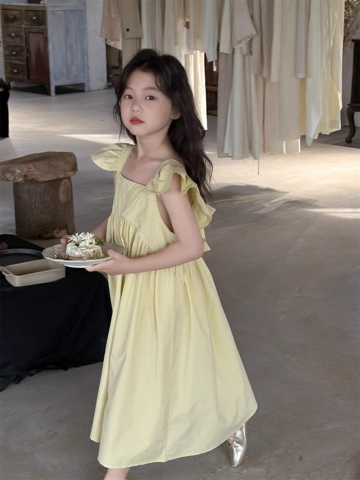 Roupa infantil atacado vestido de menina verão 25 novo infantil fino algodão colete saia estilo ocidental moda saia de princesa