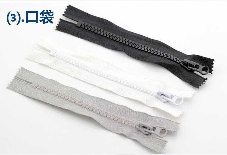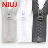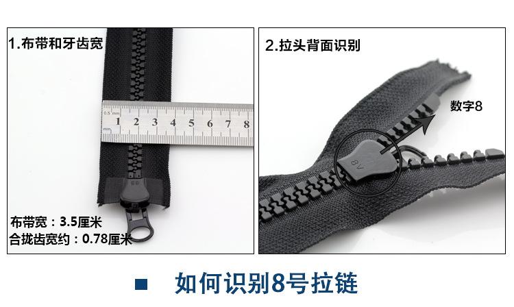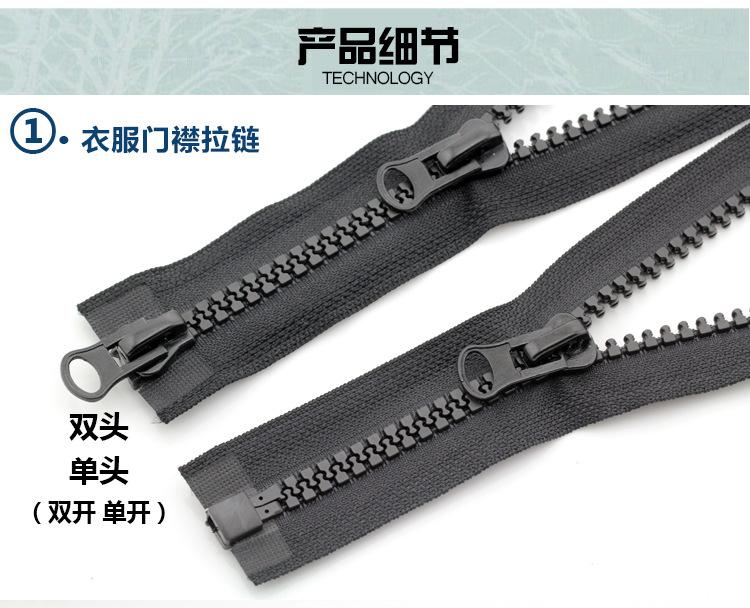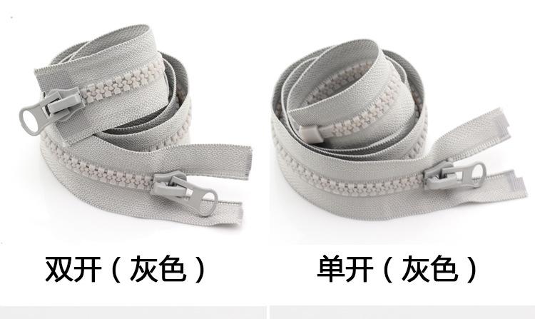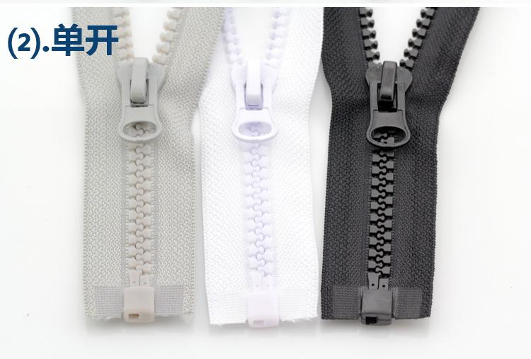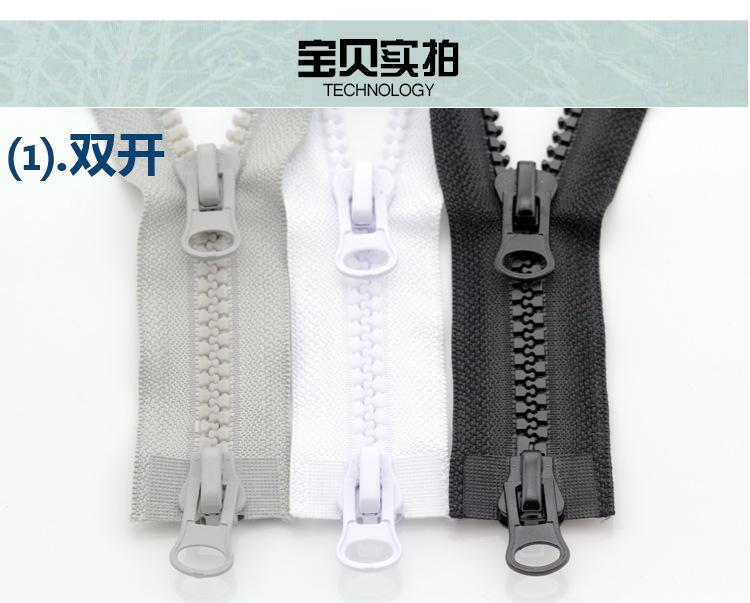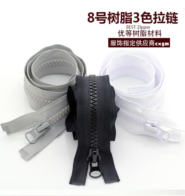 Nº 8 Zíper de Resina Duplo Abertura na Cauda Abertura Zíper de Jaqueta Acolchoada Zíper de Tenda Cabeça Semiarredondada Autotravante 3 Cores Fornecimento Imediato