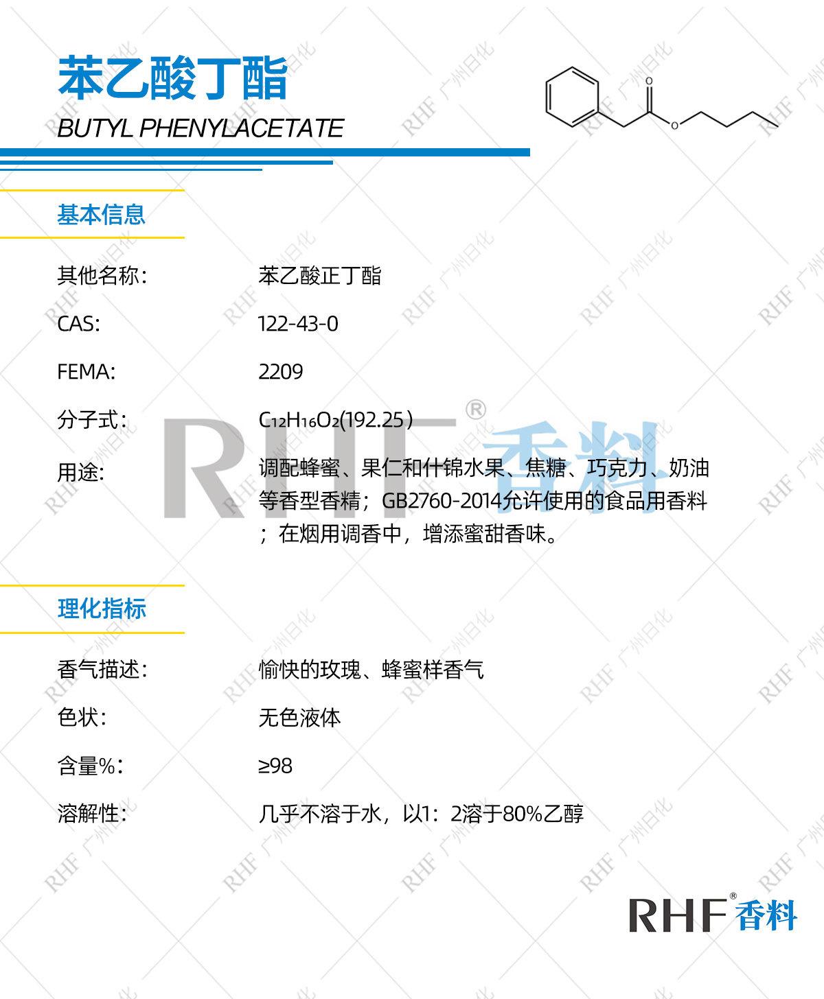 RHF especiaria fenilacetato de butila 122-43-0 aroma rosa mel adiciona aroma doce denso